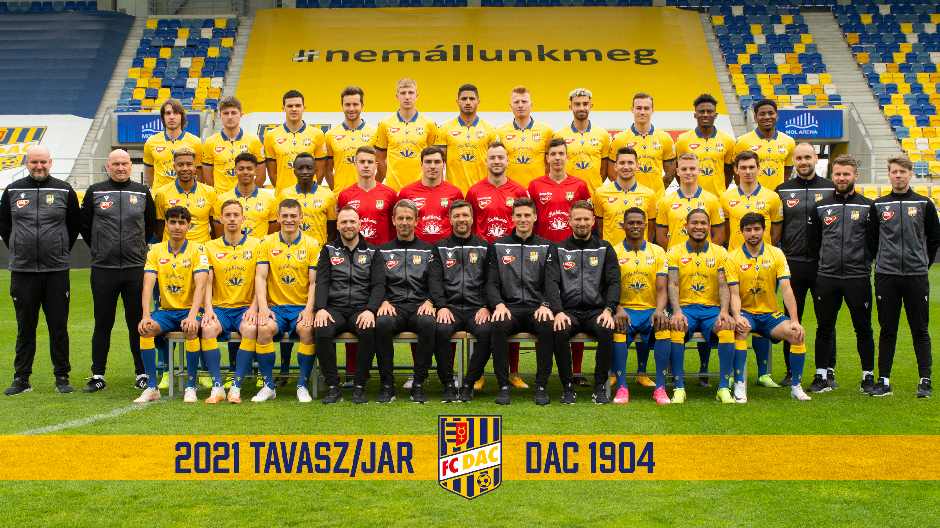 Second row: Vojtech Nagy (masseur), Zsolt Fegyveres (team doctor), Sidney Friede, Niklas Sommer, Sainey Njie, Dániel Veszelinov, Martin Jedlička, Benjamín Száraz, Attila Horváth, Máté Vida, András Schäfer, Mateus Brunetti, Pál Horváth (physio), Luká Kováčik (physio) Marián Gódány (kitman)