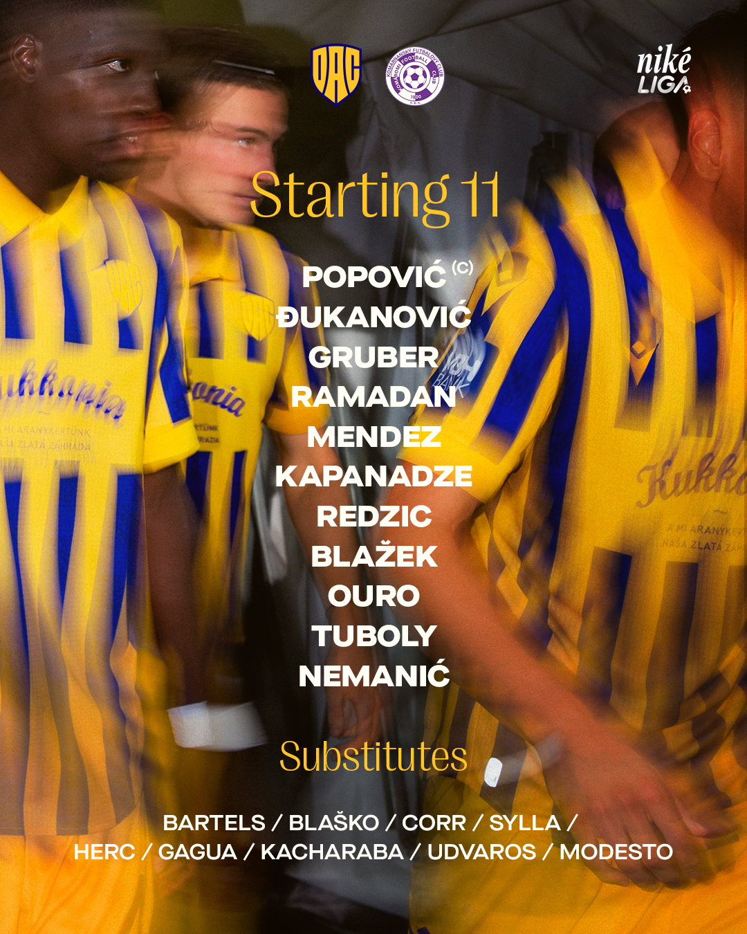 Popović - Kapanadze, Blažek, Nemanič, Mendez - Gruber, Tuboly, Ouro - Redzic, Djukanović, Ramadan