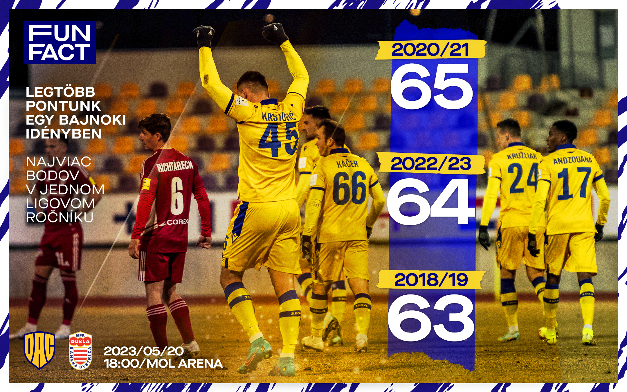 V záverečnom kole bude jednou z hlavných motivácií mužstva pomôcť Krstovićovi k zisku koruny kráľa strelcov, čo sa v prvoligovej histórii DAC-u doteraz podarilo len Pavlovi Diňovi. Ten hneď v prvom ročníku slovenskej najvyššej súťaže (1993/94) triumfoval s 19 gólmi. V hre je aj prekonanie ďalších klubových rekordov, napríklad v počte víťazstiev a získaných bodov. „S chalanmi sa o tom bavíme, vedia, prečo treba v tréningovom procese šliapať na plné obrátky aj vtedy, keď sezóna finišuje. Áno, využívame tieto čísla, pretože akýkoľvek podnet, interná alebo externá motivácia, je dobrá. Samozrejme, najdôležitejšie je vyhrať zápas, lebo nastupujeme s našim logom na prsiach a menom na chrbte, pred našimi úžasnými fanúšikmi. Sezónu chceme zavŕšiť domácim víťazstvom. Je fajn, že môžeme dosiahnuť klubové rekordy v počte víťazstiev a získaných bodov. Môžeme mať aj najlepšieho strelca ligy, čo sa v DAC podarilo len Paľovi Diňovi. Mať niečo najlepšie, je vždy hnacím motorom. Chceme, aby Krstović bol top kanonierom ligy, a urobíme pre to maximum,“ vysvetlil tréner Adrian Guľa v stredajšom vysielaní relácie Domáca pôda.