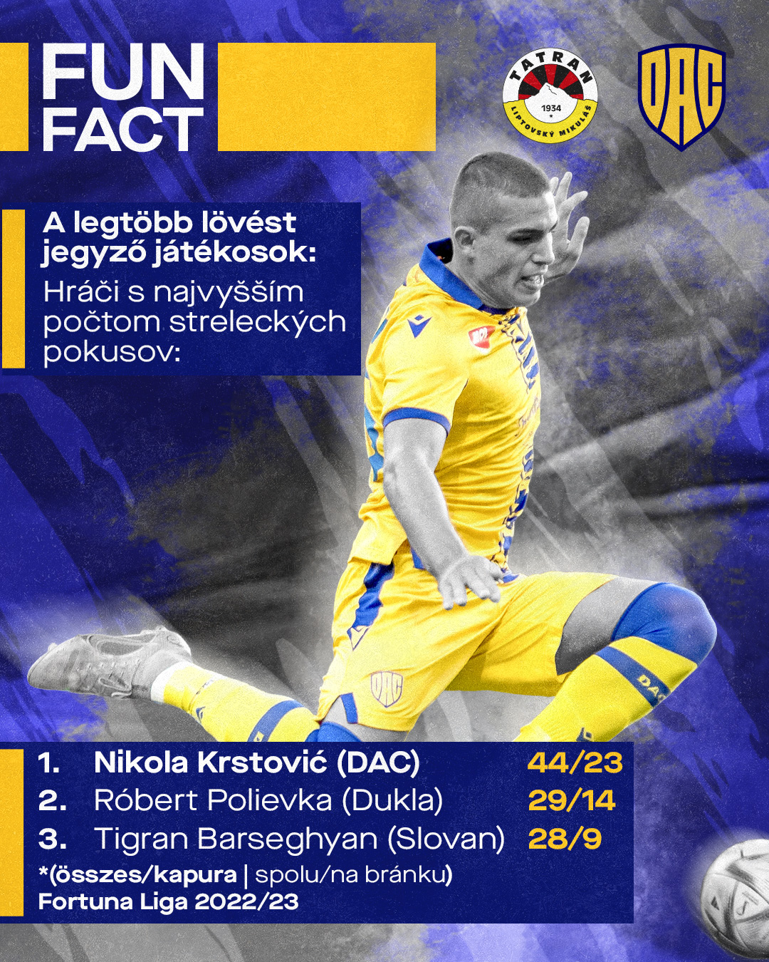 2022.7.17. – DAC-Tatran 2:1, gólszerzők: Krstović, Kružliak – Káčerík, 4630 néző