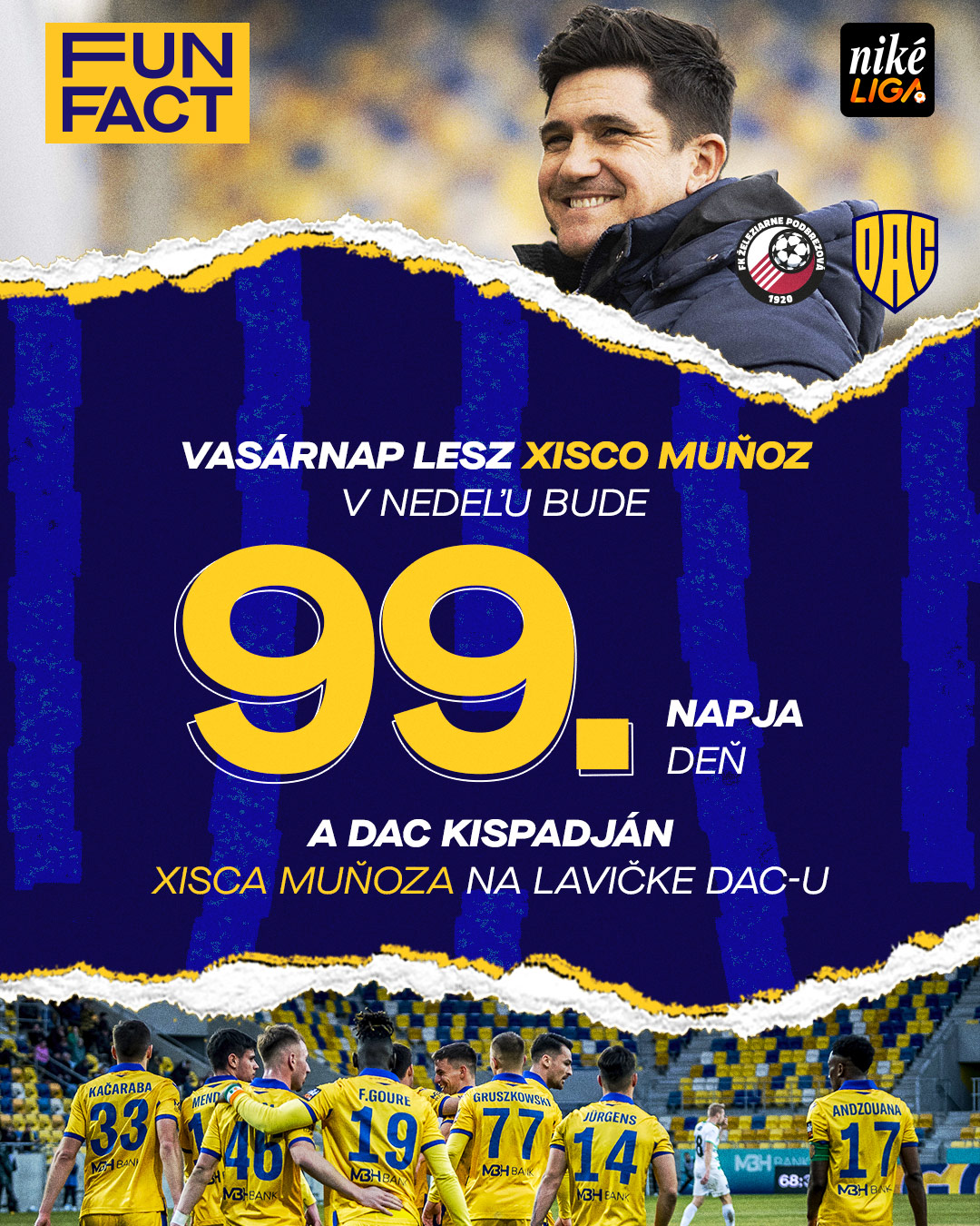 Deň súboja v Podbrezovej bude pre nášho kouča 99. od prevzatia mužstva, v pondelok teda zavŕši prvých sto dní na lavičke DAC-u. Na Horehroní zároveň odpálime sériu troch stretnutí v priebehu siedmych dní - v stredu nás čaká štvrťfinále Slovnaft Cupu proti Ružomberku a následne v sobotu uzavrieme základnú časť proti Žiline.