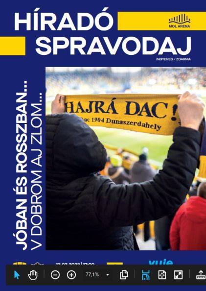 A találkozóra kiadott színes meccsfüzetet (Híradó) a DAC store-ban találják majd meg a szurkolók, illetve a képre kattintva letölthető.