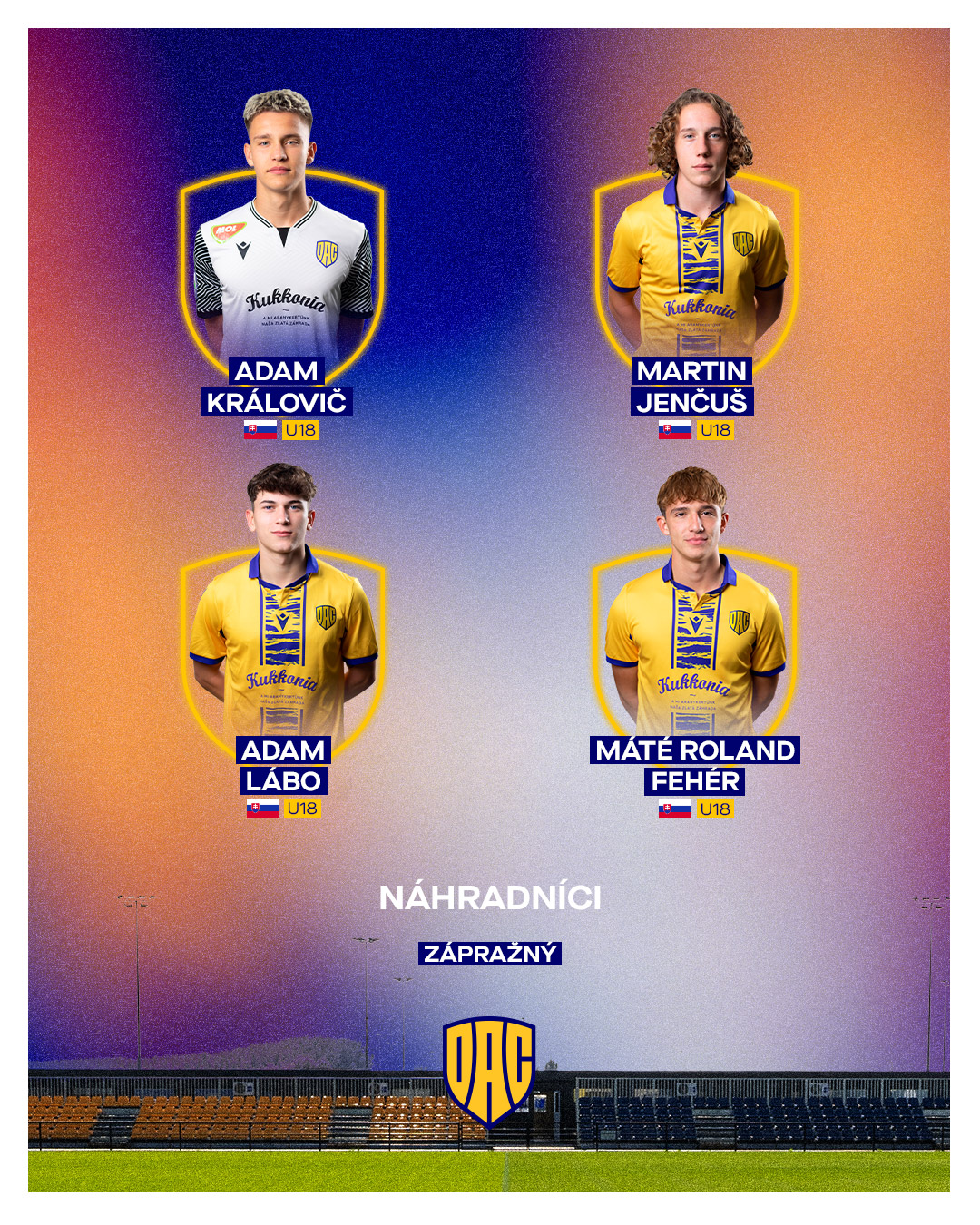 A meghívottak között több DAC-akadémista neve is szerepel: Adam Královič, Martin Jenču, Adam Lábo és Fehér Máté Roland egyaránt lehetőséget kap a nemzeti csapatban. Póttagként pedig Andrej Zápraný is a válogatott rendelkezésére áll.