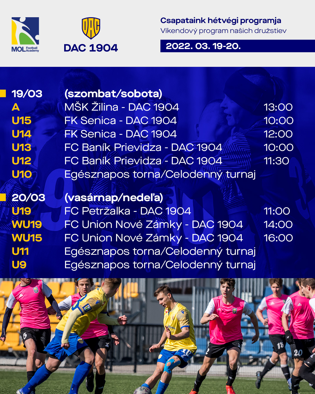 Íme, az aktuális hétvégi futballmenü – szurkolóinkat sok szeretettel várjuk a lelátókra! pé 18.3.2022 Ján Ficza