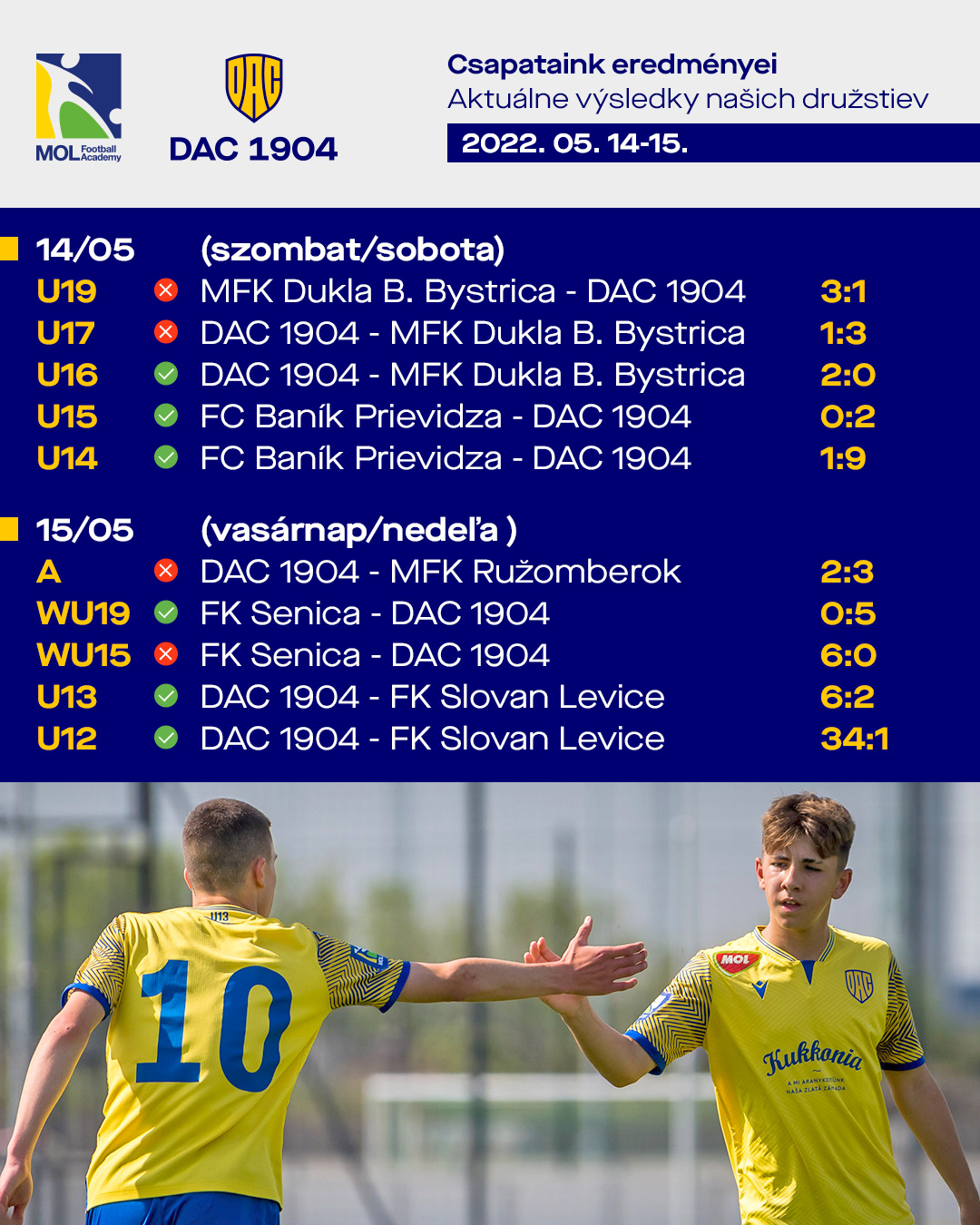 Sűrű volt a hétvége a MOL Akadémián. Egymást követték a bajnoki mérkőzések szombat délelőtt. Míg a kisebbeknél (U9,U10,U11) a Bozsik-program mérkőzései zajlottak, az U16-osok 2:0-ra győzték le Besztercebányát, Luká Klima és Csóka Szilárd találatával. Az U14 és U15 idegenben, Privigyében (FC Baník Prievidza) képviselte klubunkat. Mindkét csapatnak sikerült bezsebelni a három pontot, nem is akármilyen módon : az U14-esek kilencszer találtak be az ellenfél hálójába.
