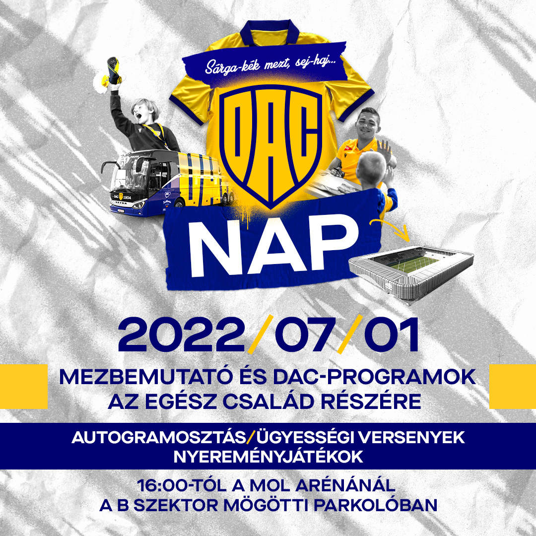 A nyári vakáció első péntek estéjén legyen a szórakozásé a főszerep! Július 1-jén egy közös szezonindító eseményre várunk mindenkit a MOL Aréna mellé. Játékos programok, értékes nyeremények és hamisítatlan sárga-kék hangulat vár mindenkire, aki kilátogat az első DAC-NAPRA.