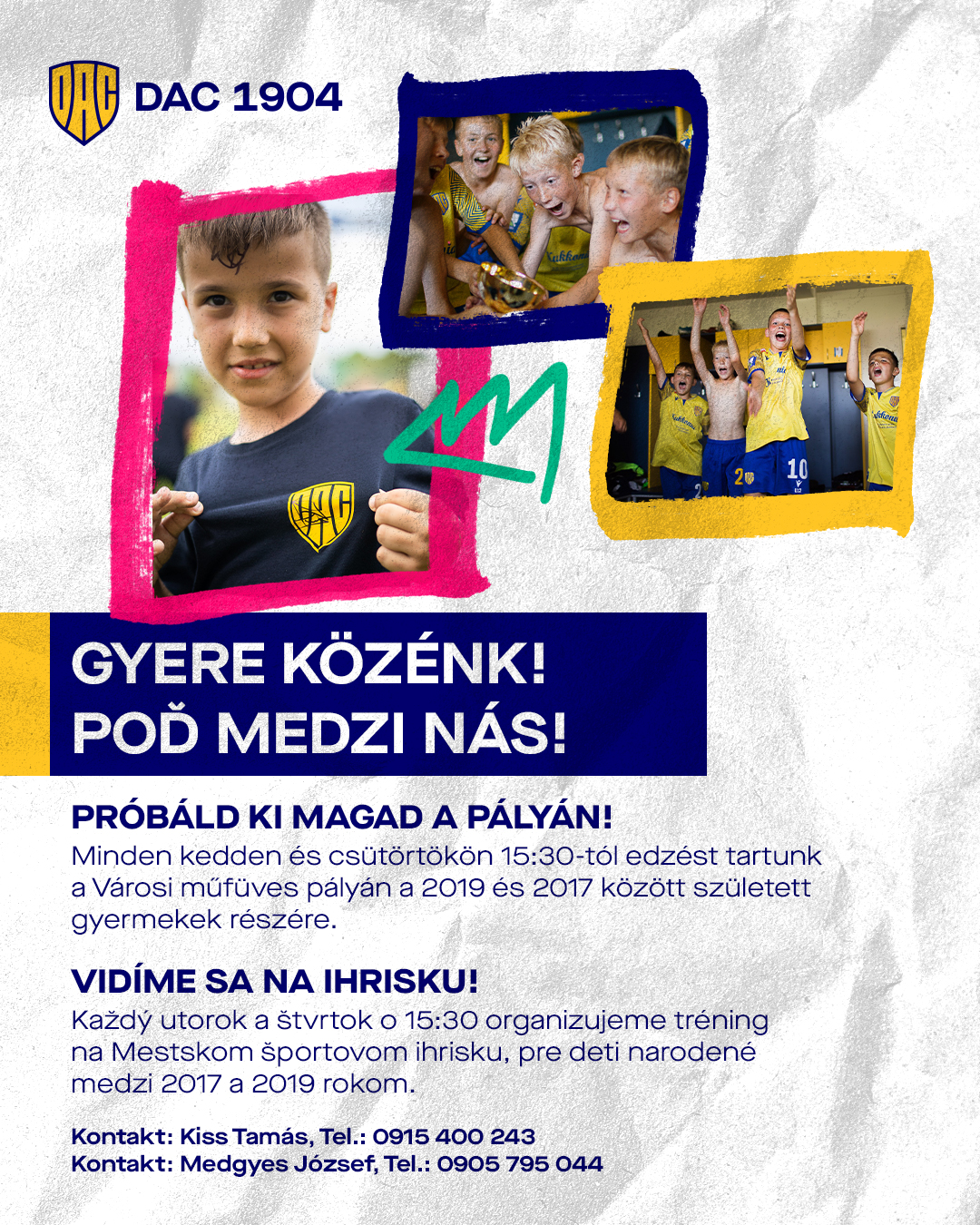 Minden kedden és csütörtökön 15:30-tól edzést tartunk a Városi műfüves pályán a 2019 és 2017 között született gyermekek részére.