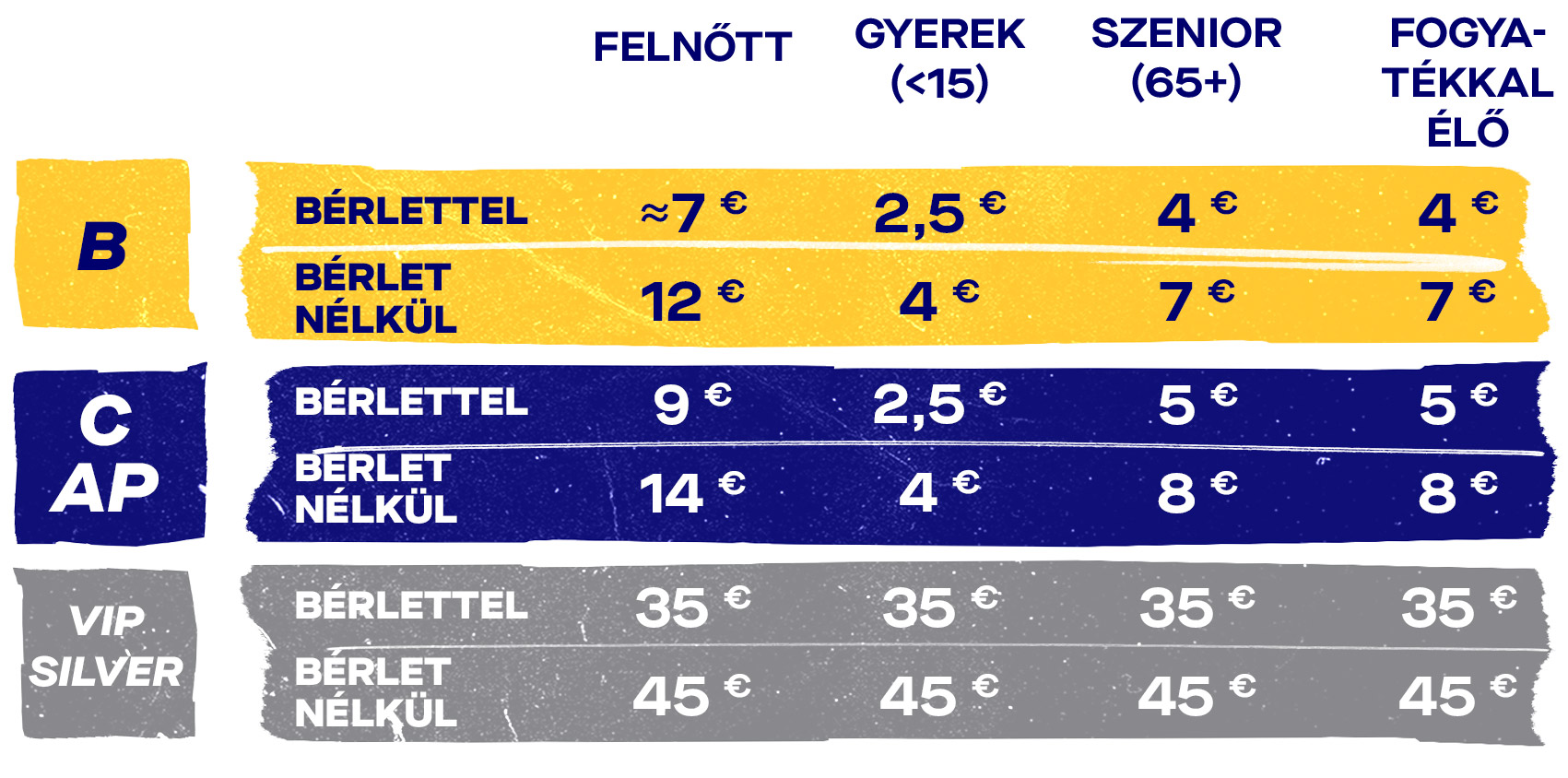 Jegyárak bérlettel és bérlet nélkül