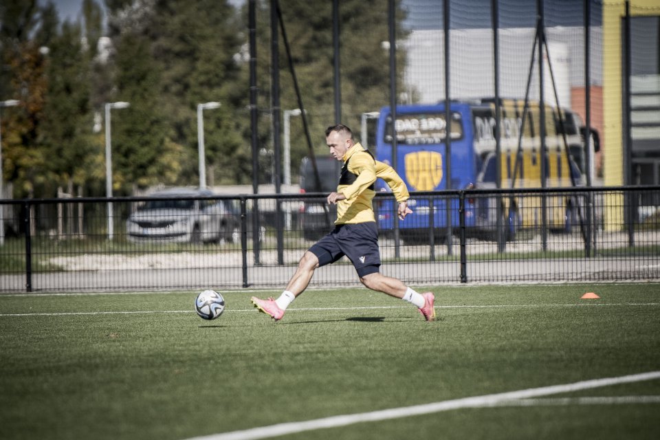 Csapatunk szorgalmasan készül a szombati, zsolnai bajnokira. A válogatott játékosok többségét továbbra is nélkülöző sárga-kékek ma két edzést abszolváltak, a délelőttit műfüves pályán. Szerző: Lelkes Ernő.