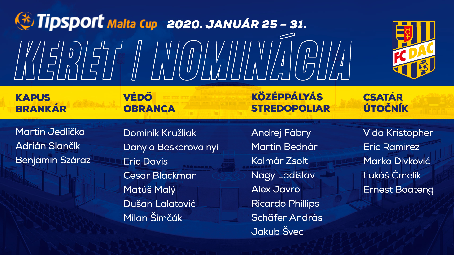 A sárga-kékek a hagyományos Tipsport Malta Cup tornán vesznek részt a Földközi-tenger szigetországában és folytatják a szezon tavaszi felére való felkészülést is.