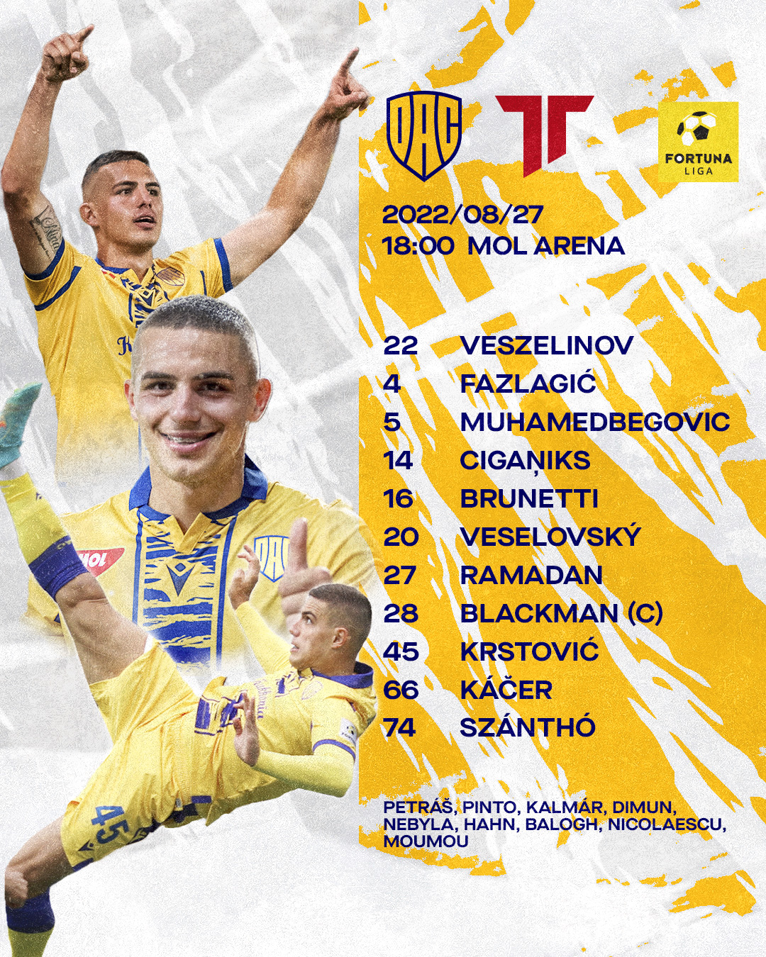 Ezt a kezdőcsapatot választotta Adrian Guľa vezetőedző a mai ligamérkőzésre. Hajrá DAC!