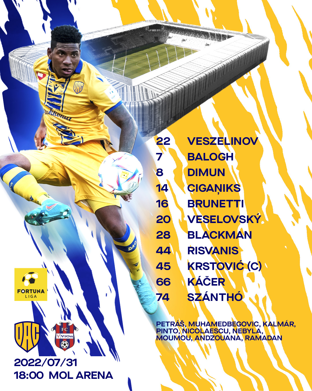 Ezt a kezdőcsapatot küldi pályára Adrian Guľa vezetőedző a mai bajnoki mérkőzésen! Hajrá DAC!