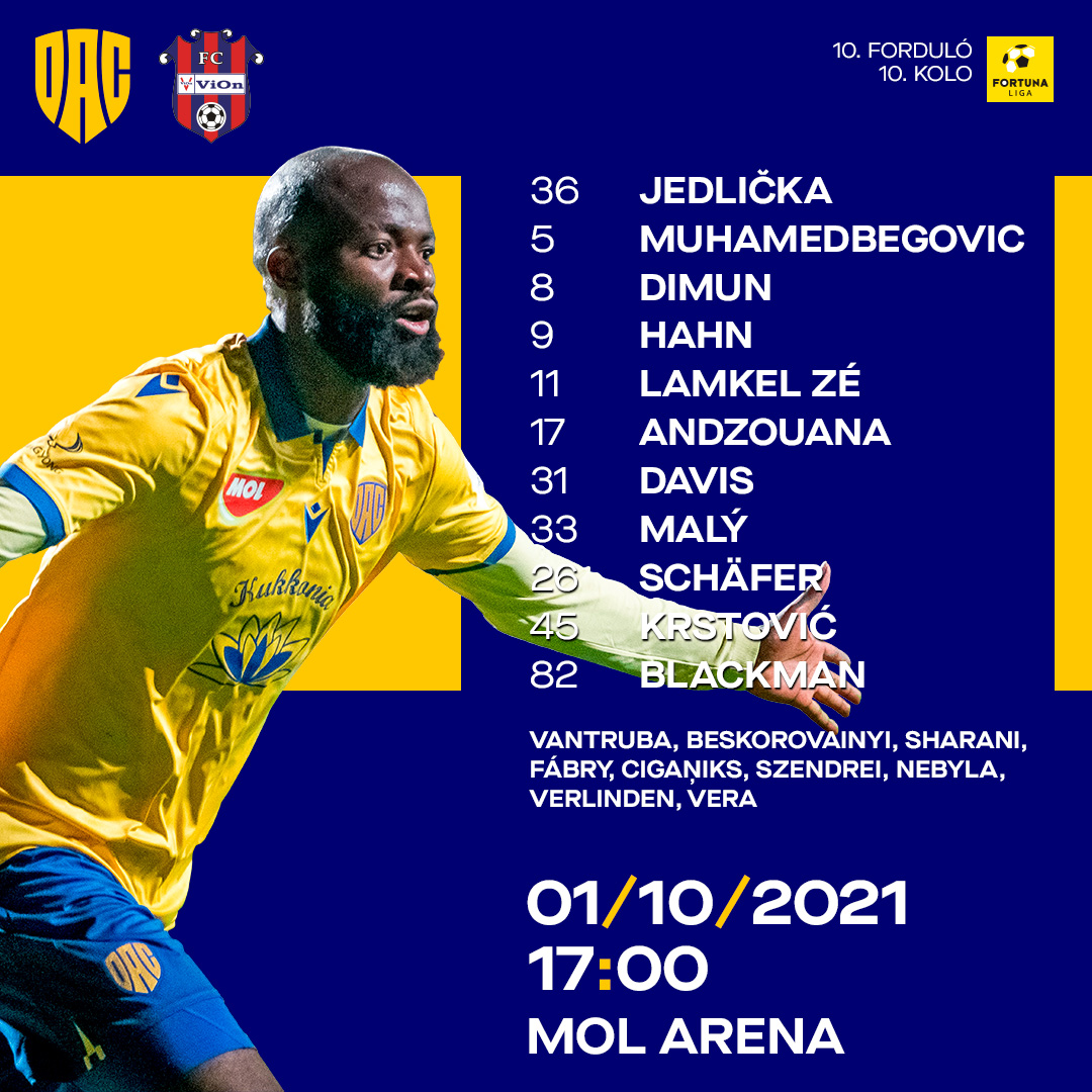 Jedlička – Blackman, Malý, Muhamedbegovic, Davis – Andzouana, Dimun, Schäfer, Lamkel Zé – Krstović, Hahn.