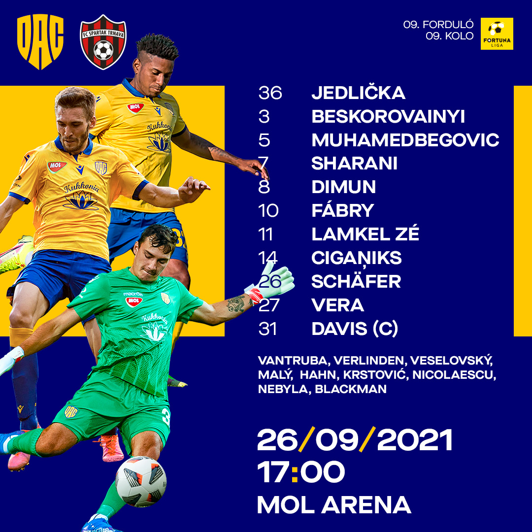 Jedlička – Vera, Muhamedbegovic, Beskorovainyi, Davis – Dimun, Schäfer – Ciganiks, Fábry, Lamkel Zé – Sharani.