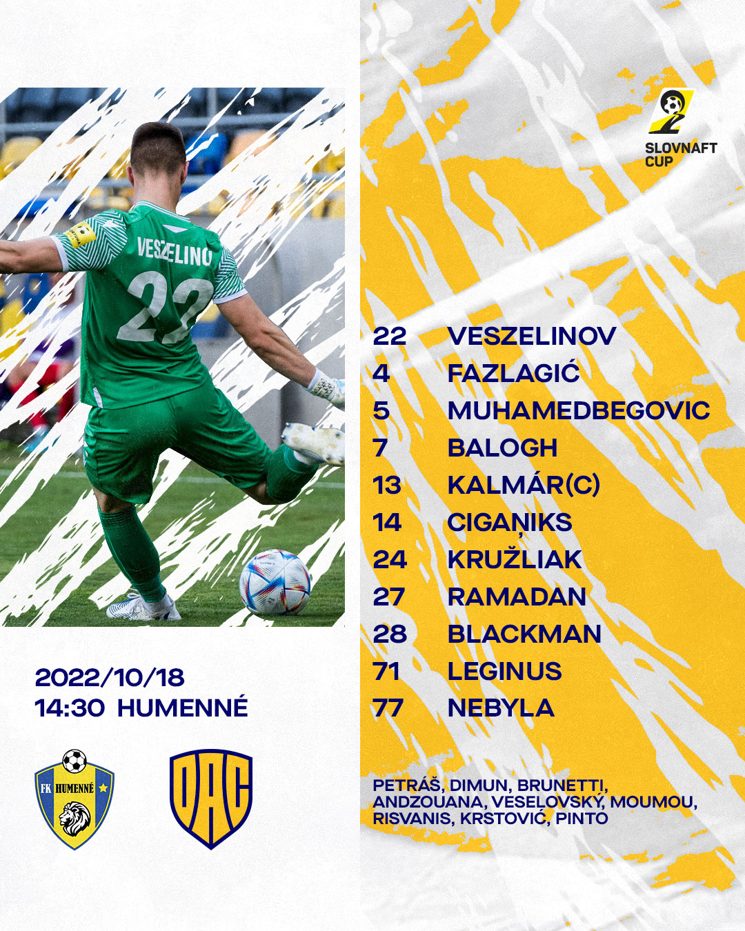 Íme, Adrian Guľa kezdőcsapata a Slovnaft Cup 4. fordulójának mérkőzésén. Hajrá DAC!