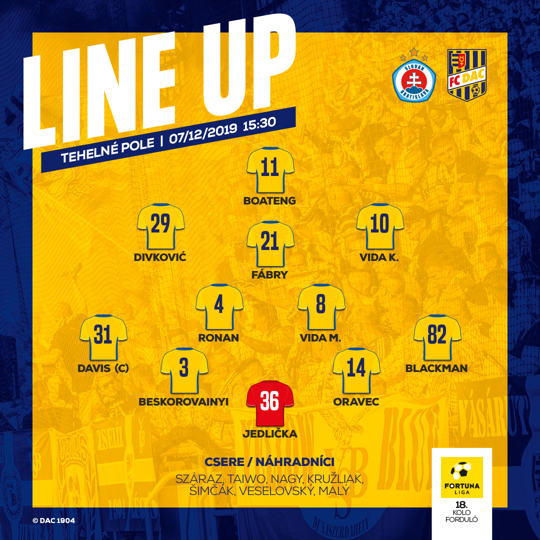 Jedlička - Blackman, Oravec, Beskorovainyi, Davis - Vida M., Ronan - Vida K., Fábry, Divković - Boateng.