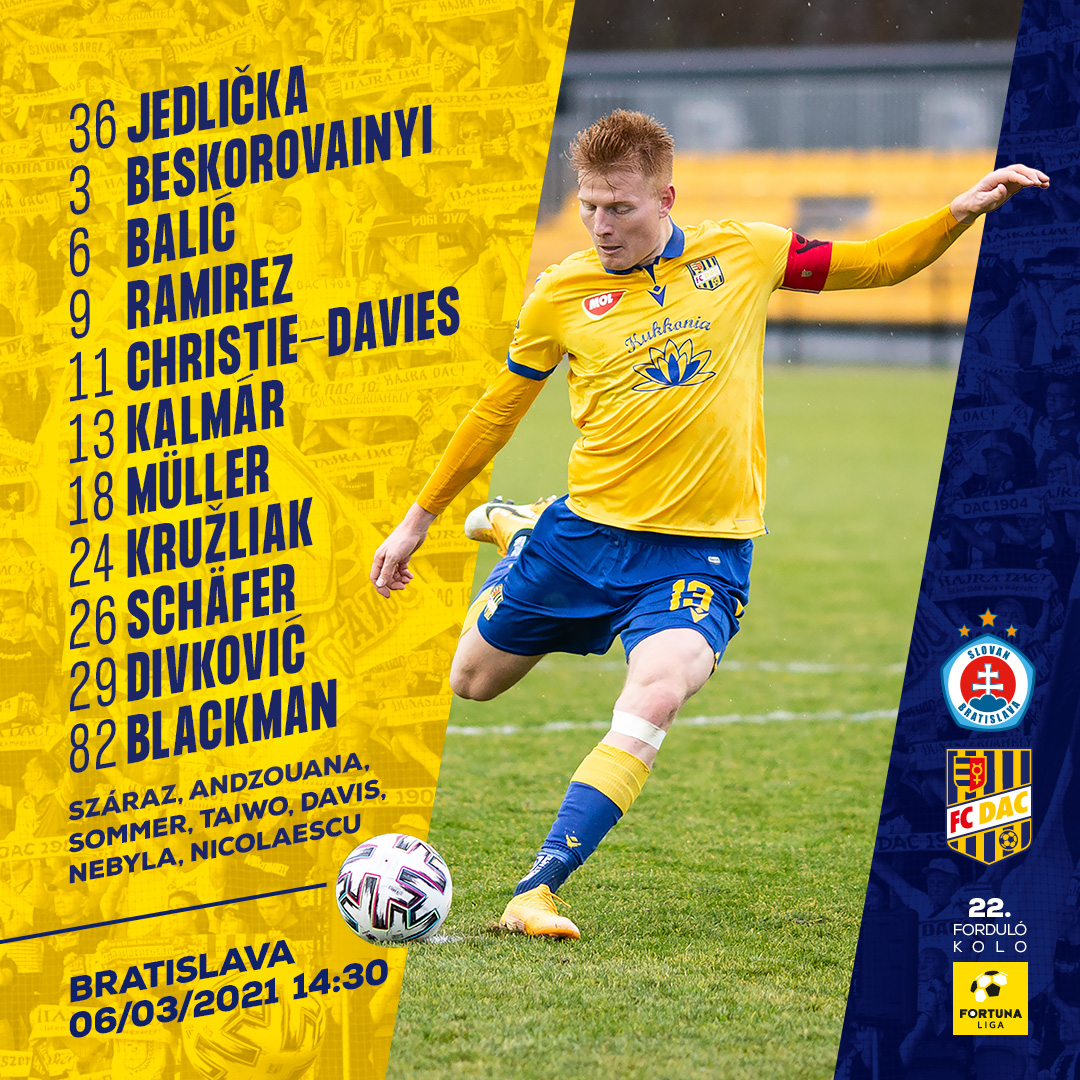 Íme, Bernd Storck kezdőcsapata a mai pozsonyi rangadón. Hajrá DAC!