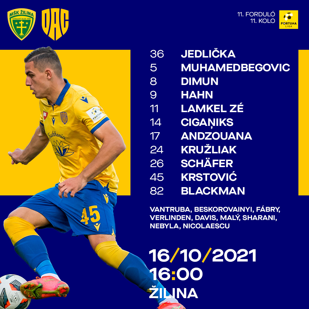 Jedlička – Blackman, Kružliak, Muhamedbegovic, Ciganiks – Andzouana, Dimun, Schäfer, Lamkel Zé – Hahn, Krstović.