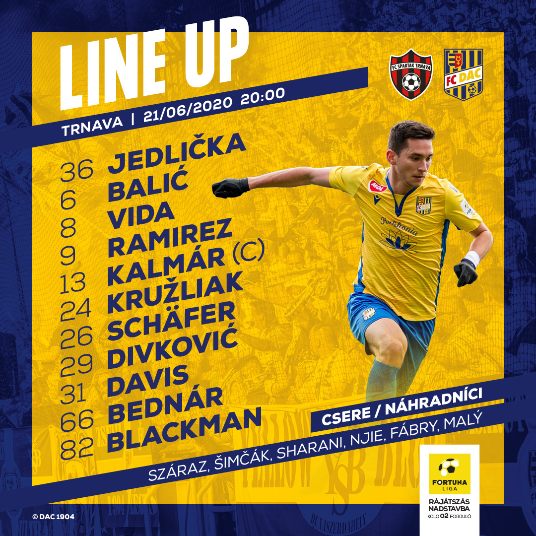 Jedlička - Blackman, Bednár, Kruliak, Davis - Schäfer, Vida M., Kalmár, Balić - Ramirez, Divković.