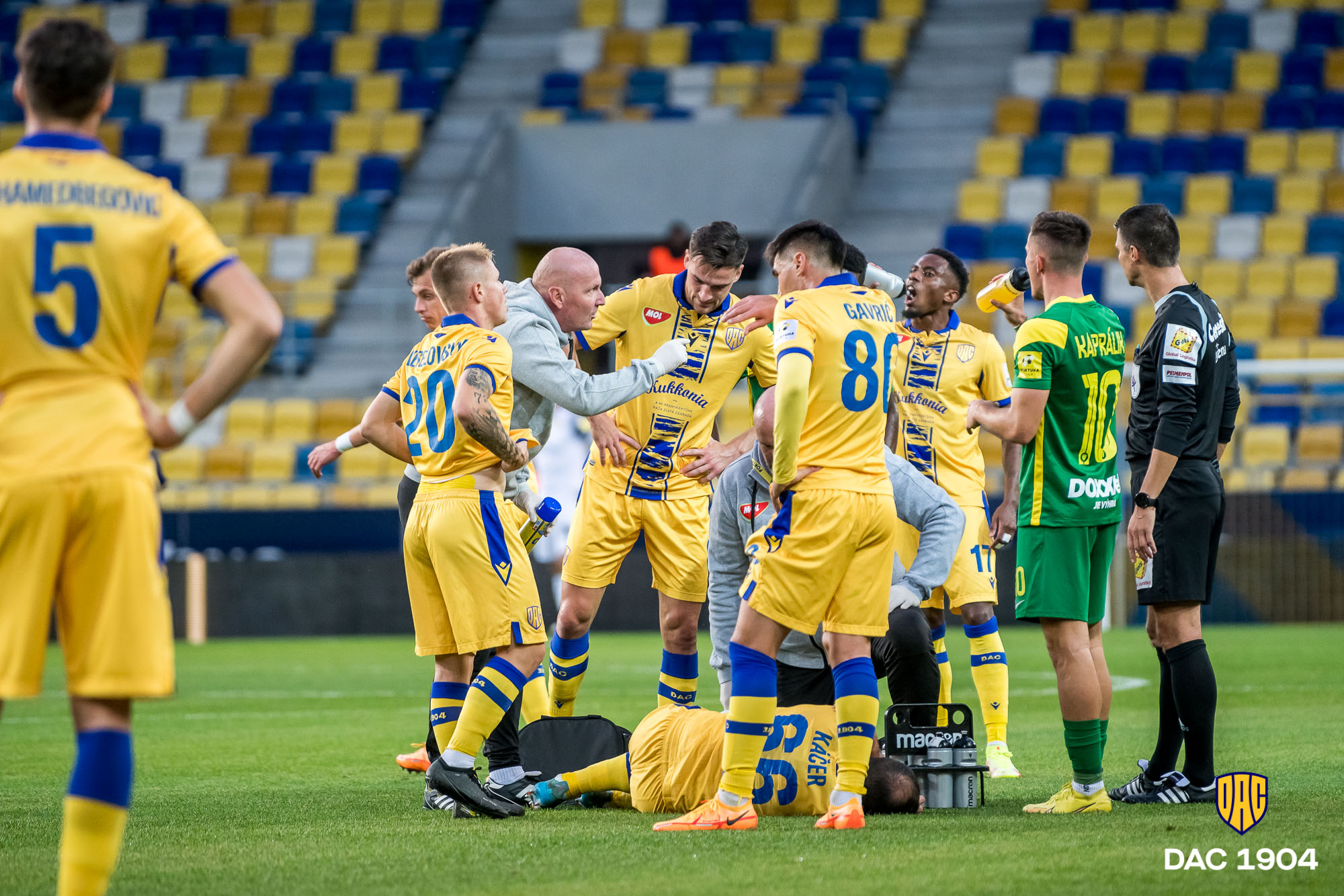 A DAC és a szlovák válogatott középpályása, Miroslav Káčer kellemetlen bokasérülést szenvedett a 13. forduló Zsolna elleni vasárnapi mérkőzésének első félórájában, amely miatt néhány hétig nem léphet pályára.