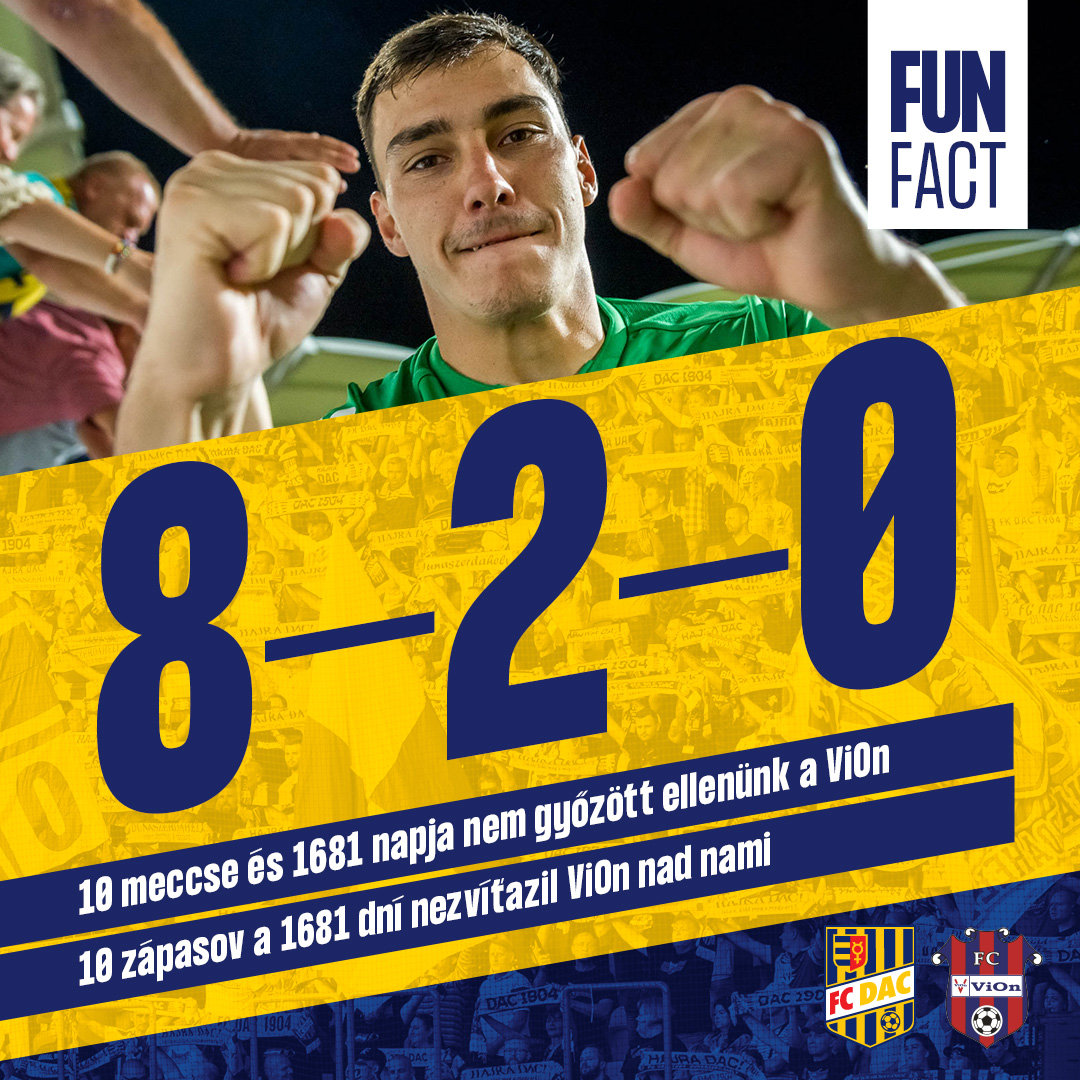 A két csapat a 29. alkalommal találkozik, a mérleg nekünk kedvez, elsősorban annak köszönhetően, hogy a legutóbbi tíz összecsapásból 8-at is megnyertünk, két alkalommal pedig döntetlen született. Tegyük hozzá, hogy ebből a tíz találkozóból mindössze egyszer voltunk képesek megőrizni kapott gól nélkül a hálónkat, és csak egy alkalommal győzedelmeskedtünk kétgólos különbséggel, a többin egygólos sikert arattunk. Érdekesség, hogy a legutóbbi négy összecsapás egyaránt a DAC 2:1-es sikerével végződött.