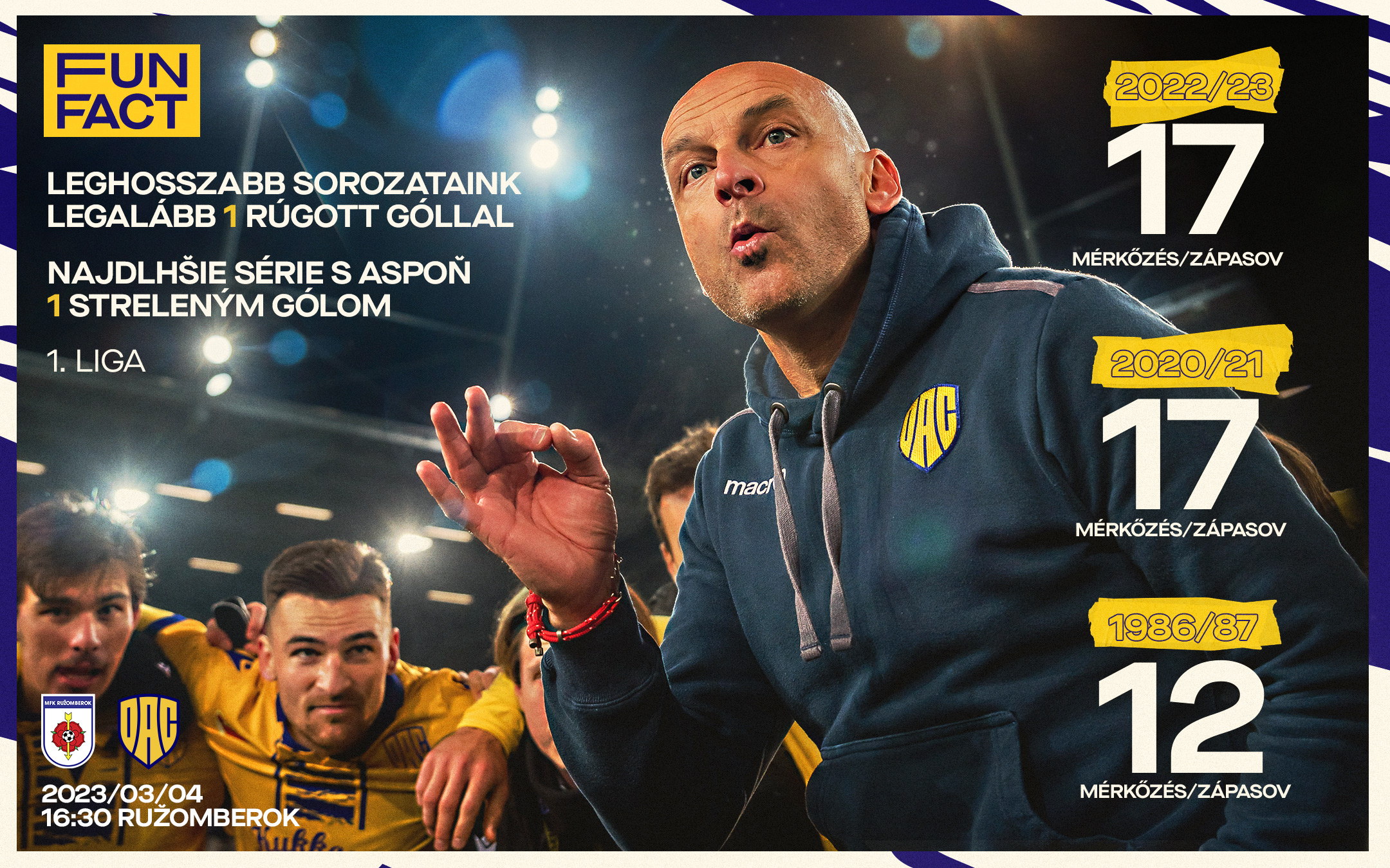 Pontosan egy évvel később ugyanazon a helyen zárjuk a jelenlegi idény alapszakaszát, de számunkra most sokkal örömtelibb a tabella állása. A DAC az éllovas pozíciójából vág neki a liptói mérkőzésnek, méghozzá 45 ponttal, ami 9-cel több, mint tavaly 22 meccs után.