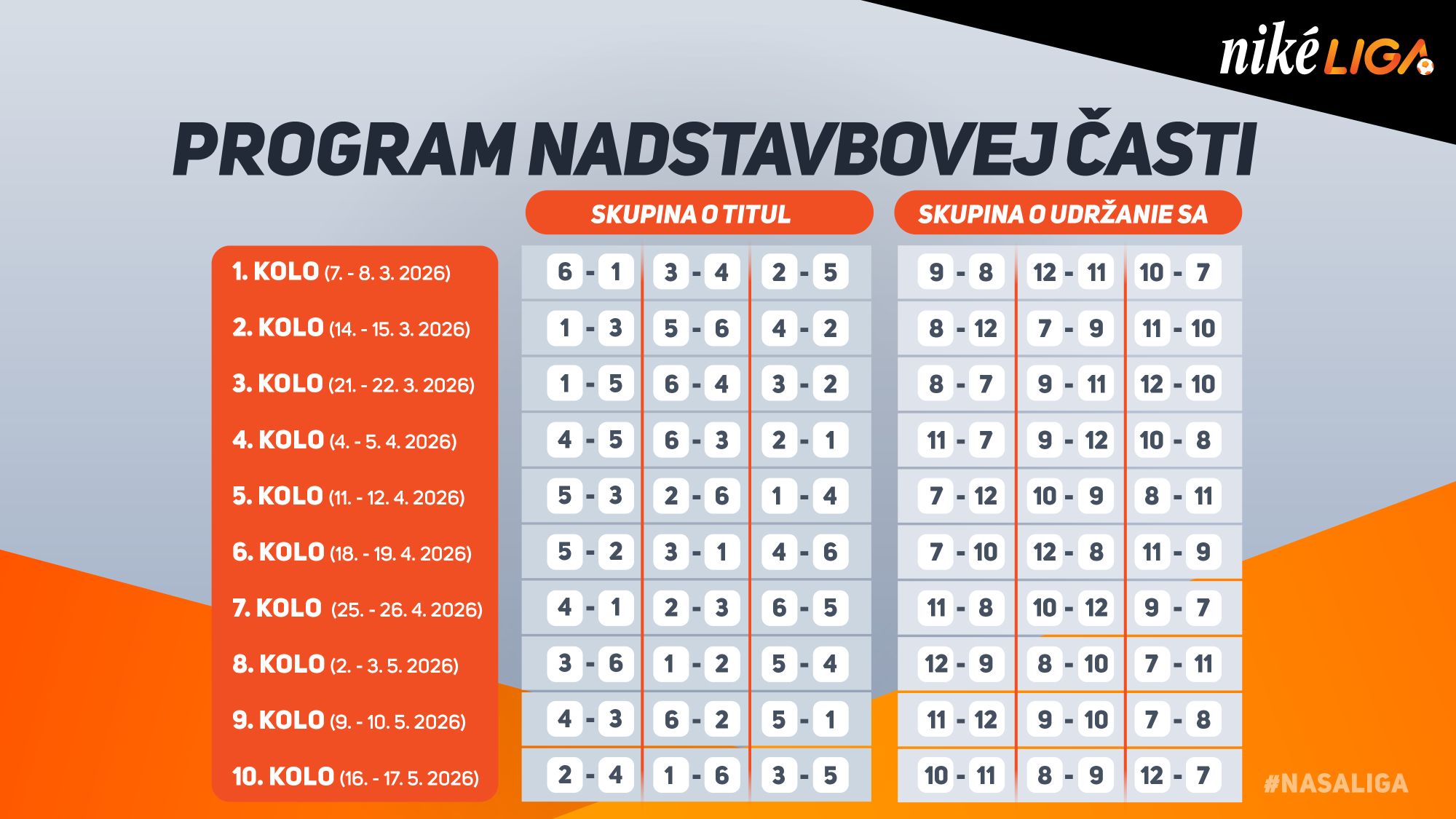 Az alapszakaszban elért helyezés döntő jelentőséggel bír a további menetrend kialakításában a szétírást a lentebb látható táblázatban találják. Ebből kiolvasható, hogy az elsőségünk esetén a március 8-9-i hétvégén Nagymihályban kezdjük meg a rájátszás küzdelmeit. Ha a 2. helyre futunk be, a Zólyombrézót fogadjuk és amennyiben harmadikként zárunk, szintén odahaza lépünk pályára, viszont a Nagyszombat ellen.
