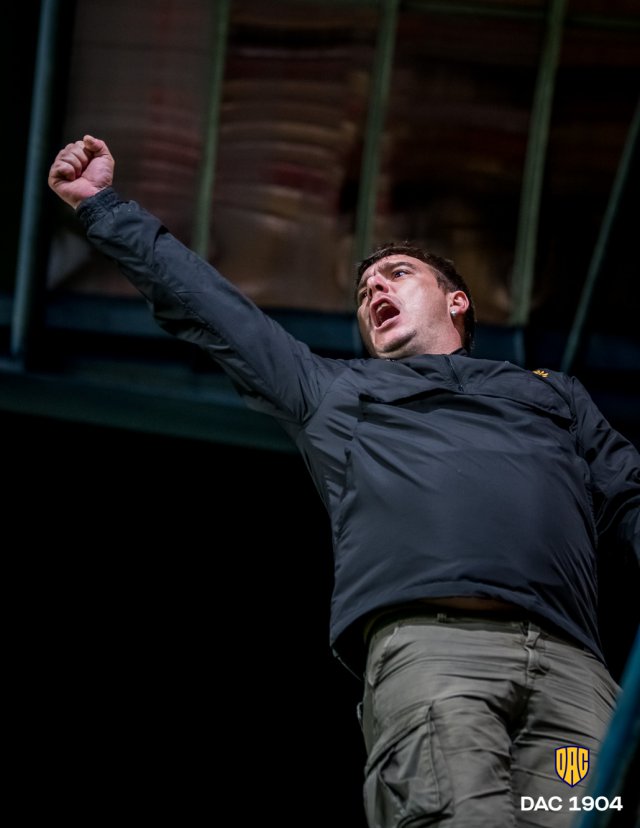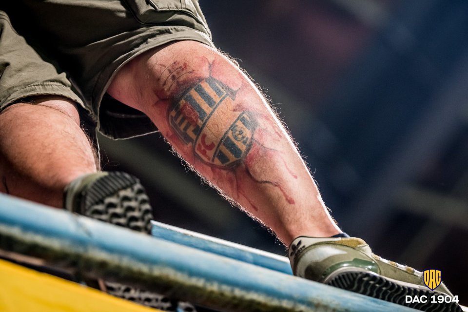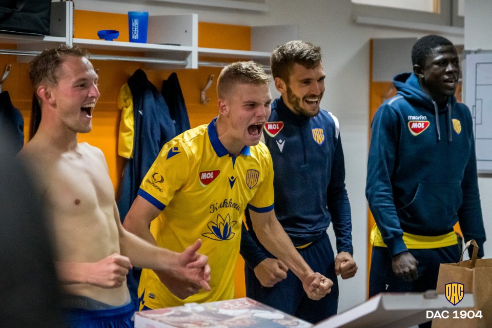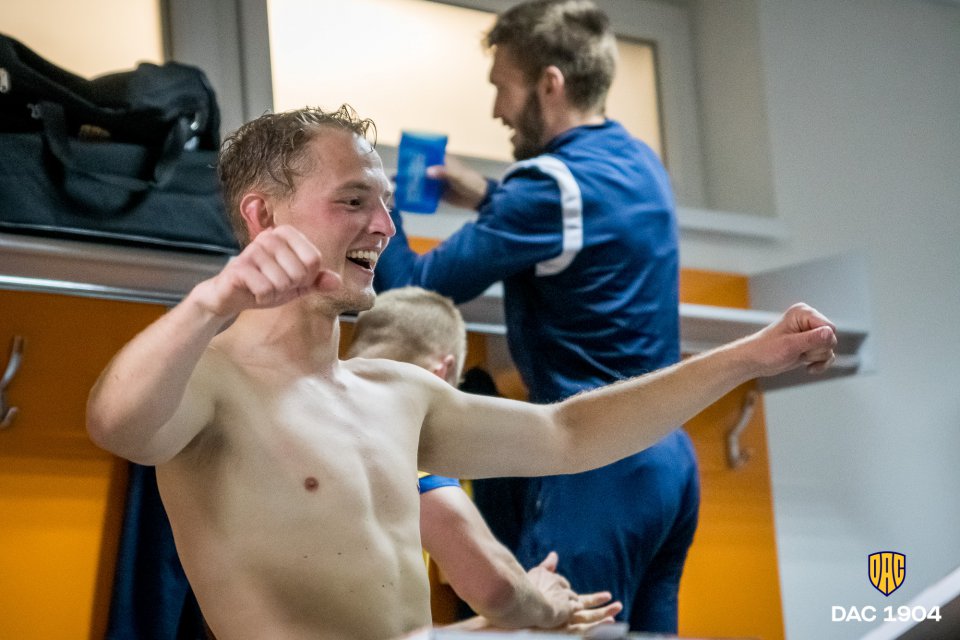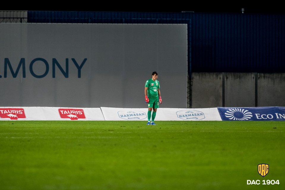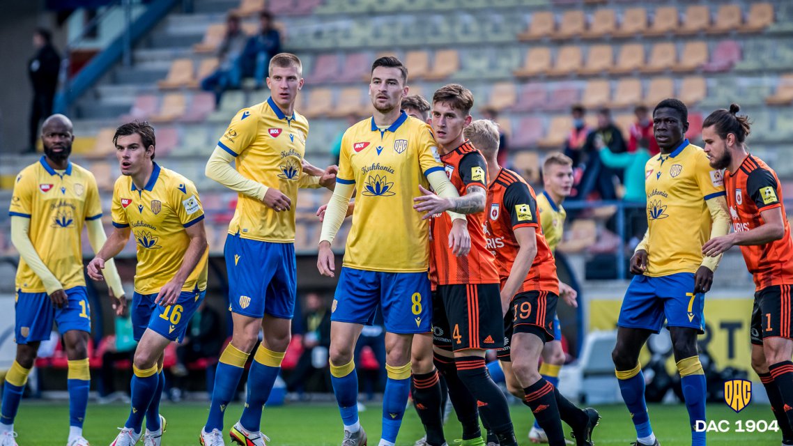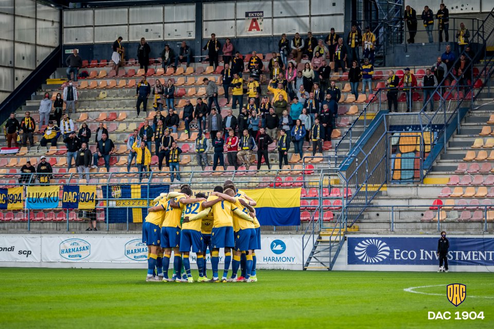 Schäfer teszi bele a lábát egy jobb oldalról érkező beadásba, így megy ki szögletre a labda. Közben szurkolóink azt éneklik, hogy "Játszik a DAC!"