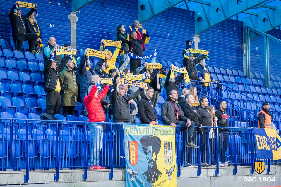 Kalmár Zsolt csapatkapitányként vezeti ki a csapatot a kezdéshez. A vendégszektorban 48 sárga-kék szurkoló jött össze.