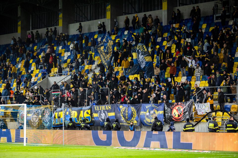 Az időközben kisütött nap gyönyőrűen világítja meg a MOL Aréna lelátóját. Csere egyik oldalon sem volt.