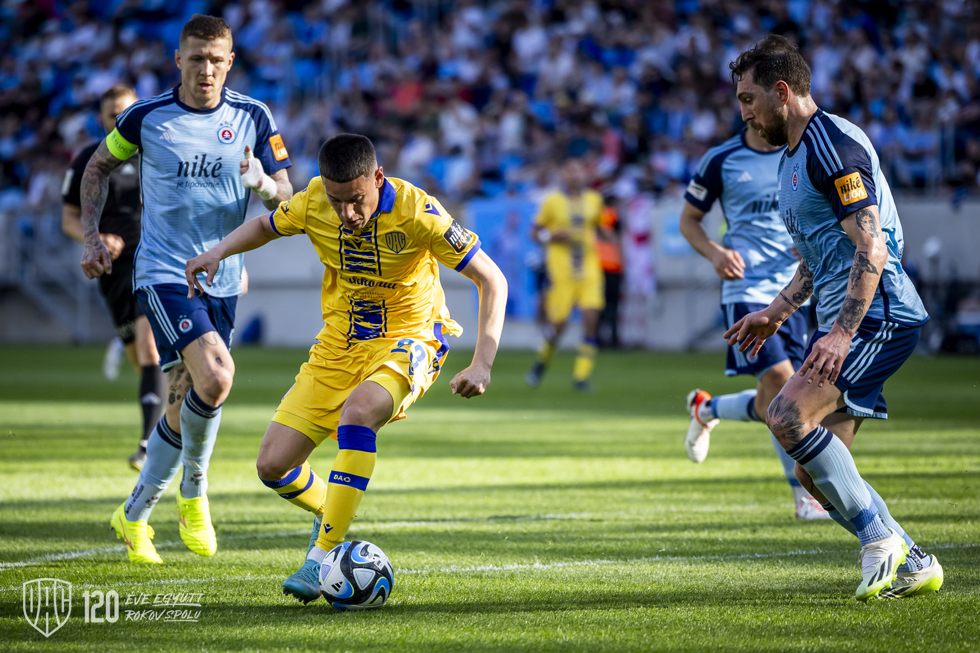 Žlto-modrí si v sobotu po bezgólovom priebehu odviezli cenný bod zo štadióna bratislavského Slovana. Po deviatej remíze v sezóne sme si v tabuľke udržali priebežné 3. miesto. Márk Csinger odohral celé víkendové derby. „Zisk bodu na pôde rivala môžeme hodnotiť pozitívne, ale nikto z nás nechcel, aby Slovan oslavoval titul po zápase s nami. Chceli sme vyhrať, ale aj ten jeden bod je dobrý. Obe mužstvá bojovali, nevytvorili si nejaké veľké šance, bol to typický remízový duel. Hráči bojovali, zrážali sa, my sme sa snažili spraviť všetko pre víťazstvo. Pri Trusovej hlavičke som už-už dvíhal ruku, no lopta bohužiaľ skončila na žrdi. Myslím si, že keby sme z tej situácie skórovali, odvezieme si tri body, pretože domáci si už potom žiadnu väčšiu príležitosť nevypracovali,“ zhodnotil sobotňajších 90 minút Márk Csinger.