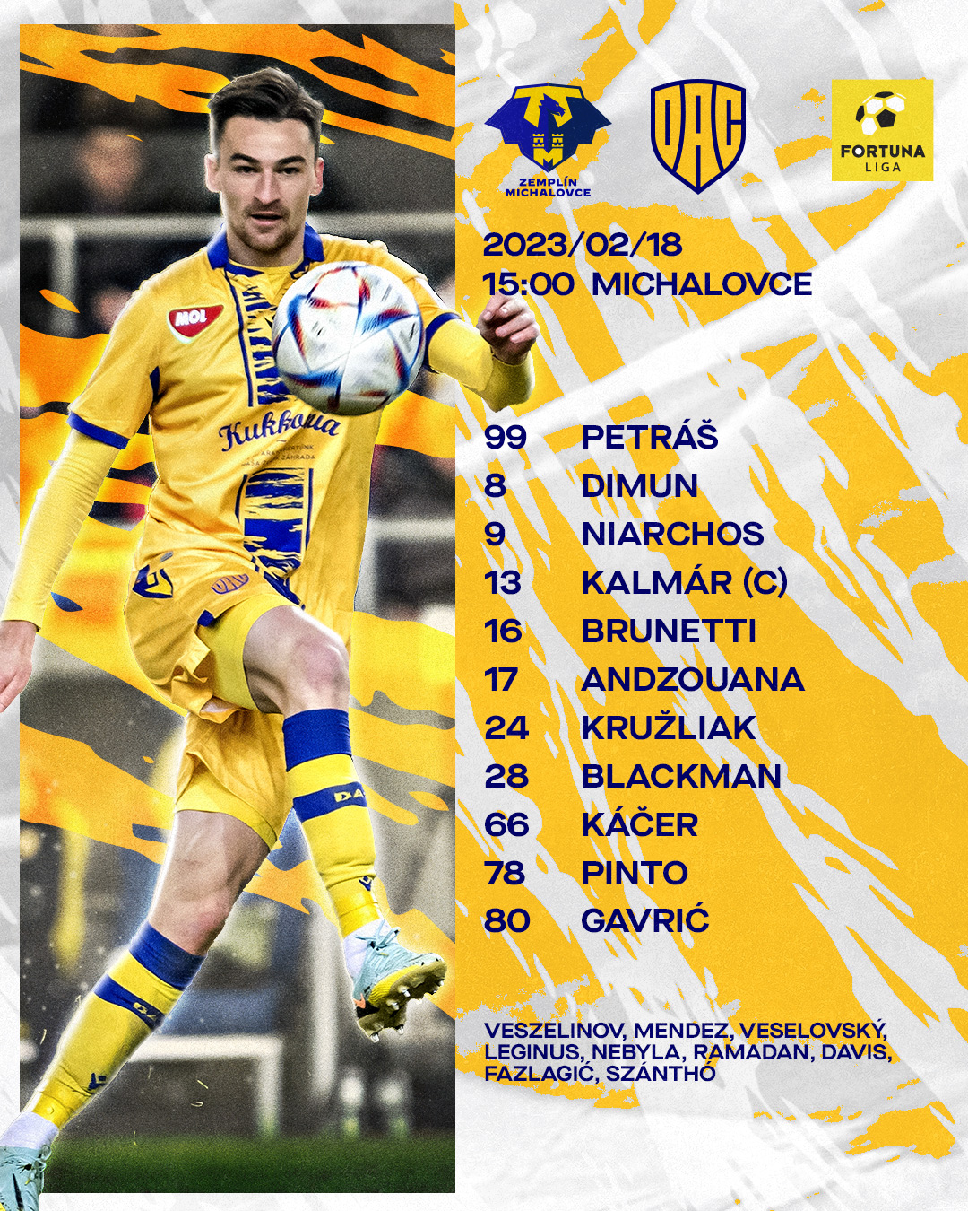 Petráš - Pinto, Kružliak, Brunetti, Andzouana - Káčer, Dimun, Kalmár - Blackman, Niarchos, Gavrić