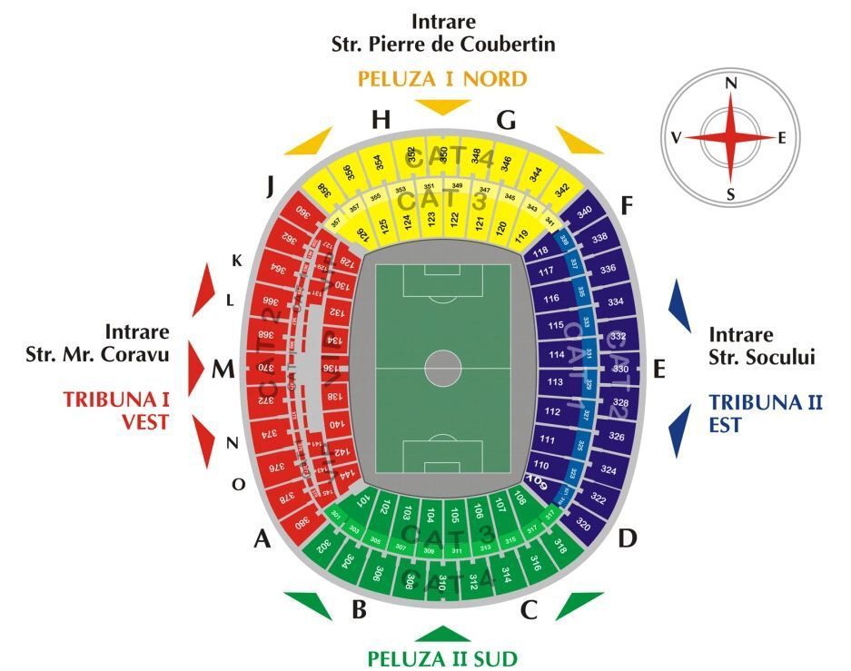 Mapka národného štadióna v Bukurešti: