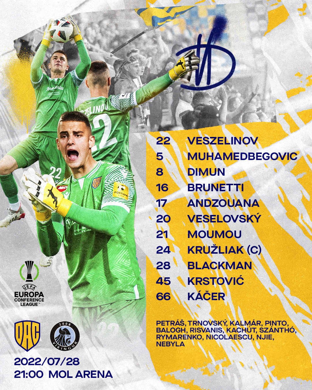 Veszelinov - Blackman, Kružliak, Brunetti, Muhamedbegovic - Káčer, Veselovský, Dimun - Andzouana, Krstović, Moumou.