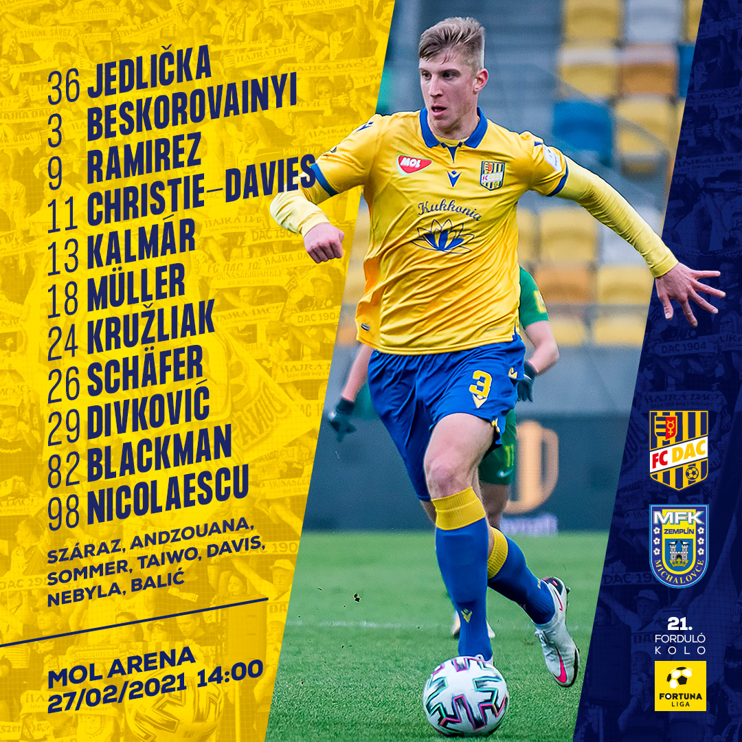 Jedlička - Blackman, Kružliak, Müller, Beskorovainyi - Divković, Schäfer, Christie-Davis, Kalmár - Nicolaescu, Ramirez.