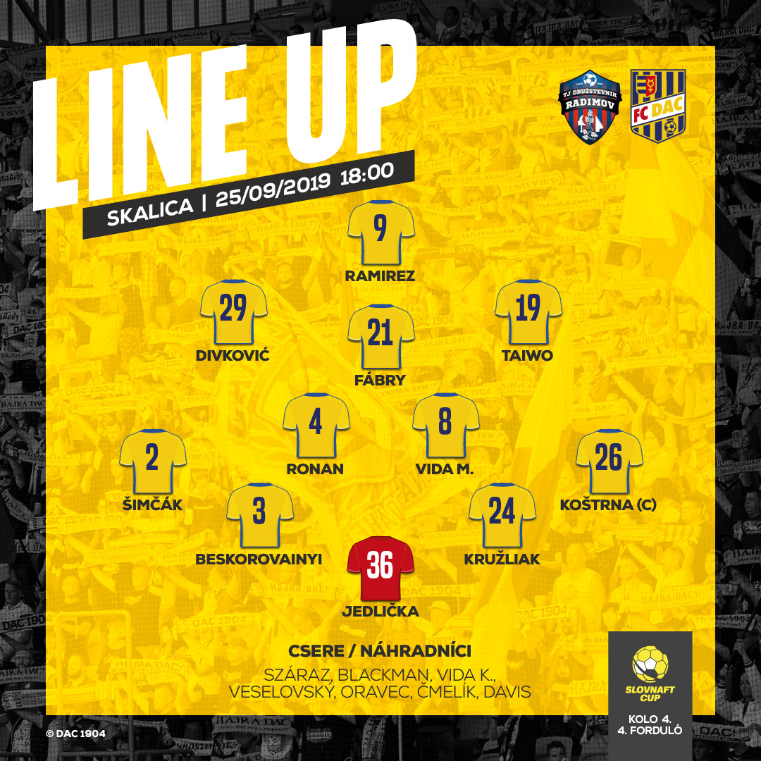 Jedlička - Koštrna, Kružliak, Beskorovainyi, Šimčák - M. Vida, Ronan - Taiwo, Fábry, Divković - Ramirez.
