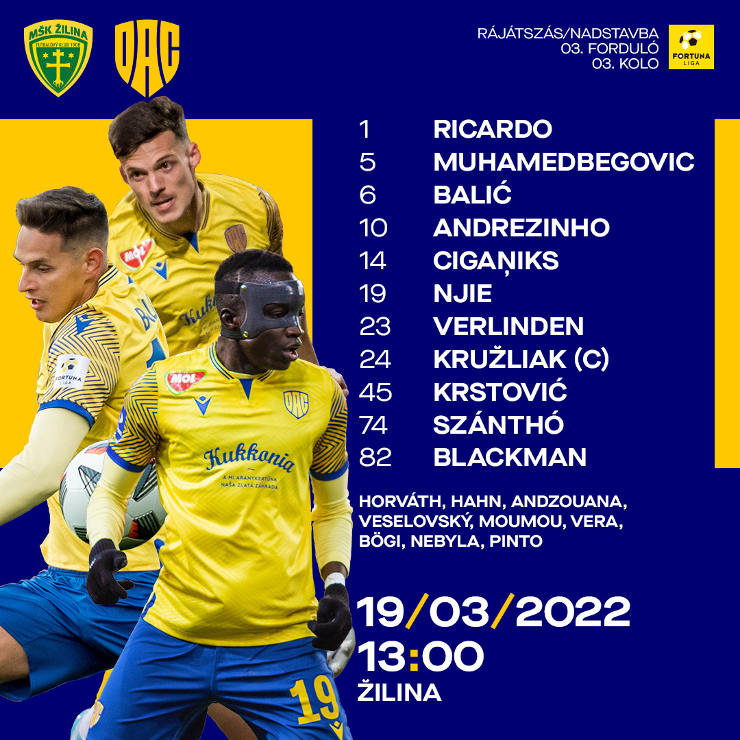 Náhradníci: Horváth, Vera, Pinto, Veselovský, Nebyla, Bögi, Moumou, Andzouana, Hahn