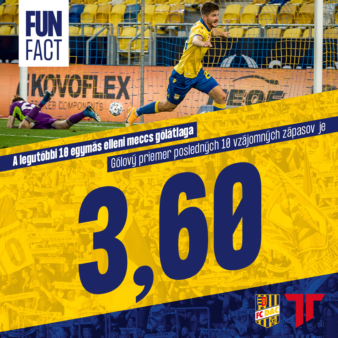 Zajtra na seba narazíme 30. krát v najvyššej súťaži, na našom štadióne to bude 15. vzájomný duel. Väčšina tých predošlých priniesla bohatú gólovú nádielku - priemer je 3,07, za posledných 10 zápasov až 3,60. Prispeli k tomu aj prvé dva súboje v aktuálnej sezóne. Na jeseň vyhral v MOL Aréne DAC 3:1 po obrate, ktorý nesie gólový podpis Kalmára a Divkovića (2). Hostia za stavu 1:1 nepremenili jedenástku. Bolo to v 8. kole a stanovili sme vtedy nový rekord slovenskej ligy v počte víťazstiev v úvode ročníka.