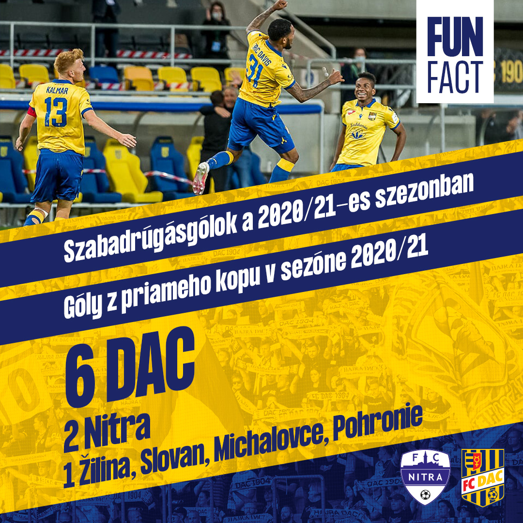 Stretnú sa v ňom dva tímy, ktoré v doterajšom priebehu súťaže zaznamenali najviac gólov z priamych voľných kopov. DAC vedie (aj) toto poradie so 6 gólmi, Nitra je druhá s dvomi. Celkovo 12 mužstiev v doterajšom priebehu sezóny trafilo z priameho kopu 12-krát.