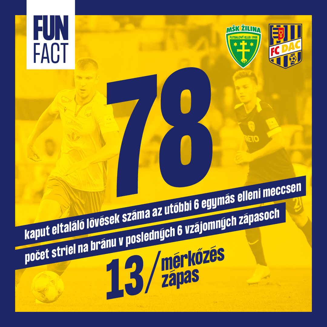 V posledných rokoch patrili vzájomné duely DAC-u so Žilinou vždy k ozdobám súťaže a veríme, že inak tomu nebude ani zajtra. V posledných šiestich prípadoch bol priemer streleckých pokusov priamo do priestoru bránky 13 na zápas. „Je to tým, že obe mužstvá okamžite vysoko napádajú, po zisku lopty sú blízko bránky a hneď zakončujú. Pravda, v posledných dvoch zápasoch sme si mohli vytvoriť aj viacero príležitostí, lenže nám nevychádzali finálne prihrávky,“ hovorí kapitán DAC-u Zsolt Kalmár.