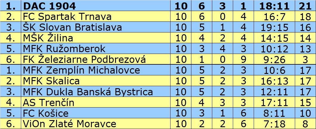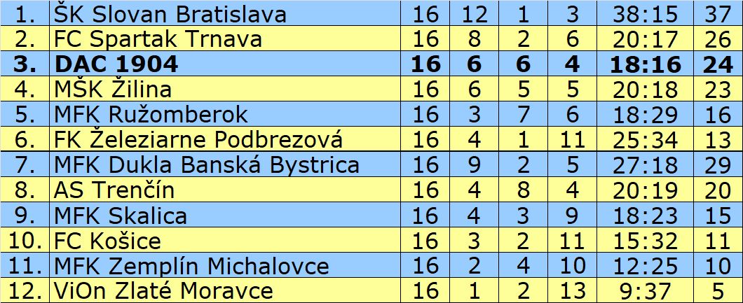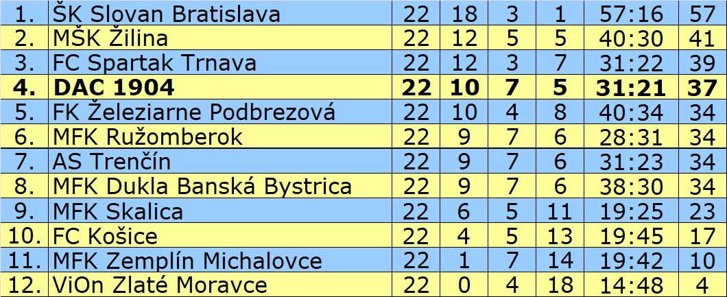 Prvýkrát sme dokázali obhájiť pozíciu vicemajstra. Účinkovanie DAC-u v uplynulej sezóne si zhodnotíme aj cez čísla a štatistiky - na úvod prinášame tabuľky ligové aj historické.