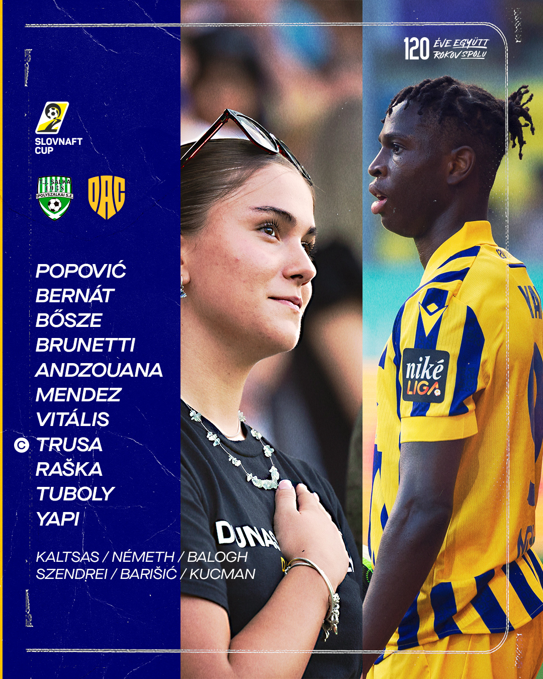 Popović - Yapi, Raška, Brunetti, Mendez - Vitális, Tuboly, Bősze - Andzouana, Trusa, Bernát