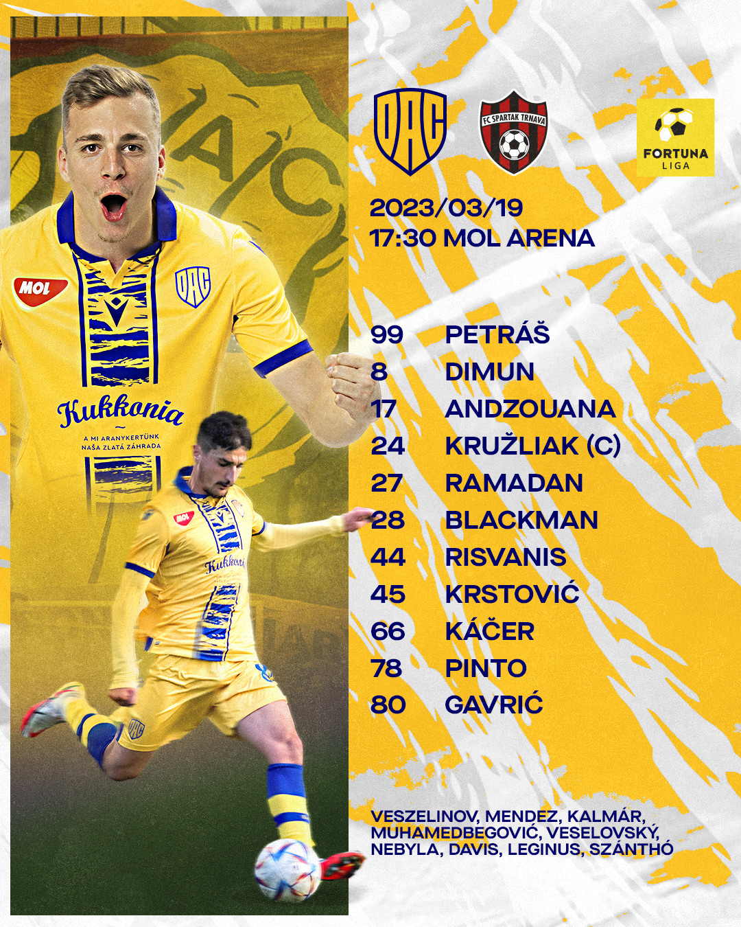 Petráš - Pinto, Risvanis, Kružliak, Andzouana - Káčer, Dimun, Ramadan - Blackman, Krstović, Gavrić