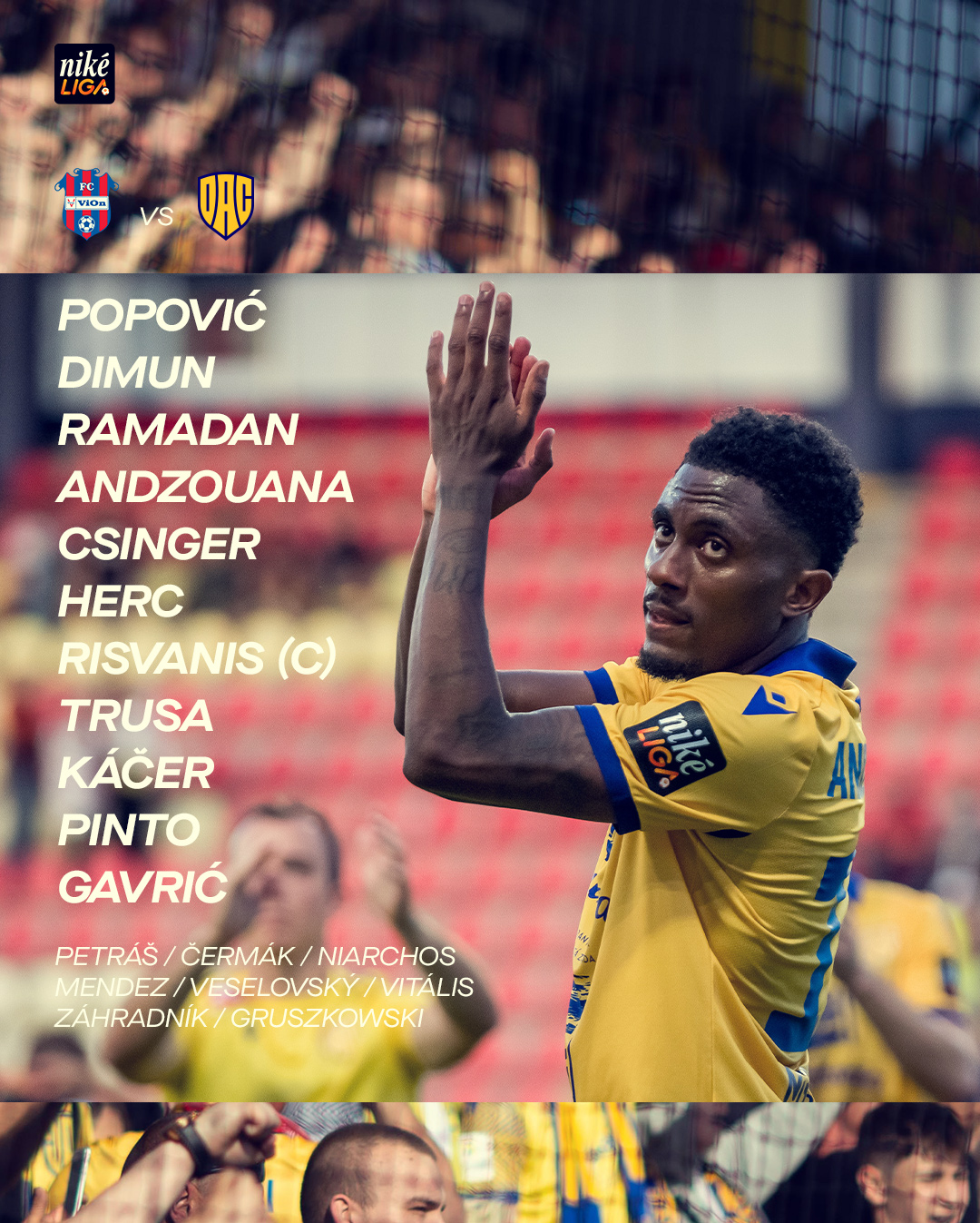Popović - Pinto, Risvanis, Csinger, Andzouana - Káčer, Dimun, Herc - Gavrić, Trusa, Ramadan