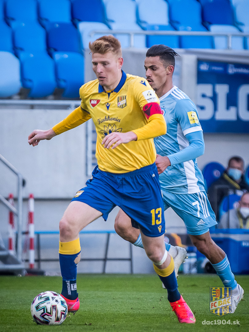 sme mali šancu, by Slovan musel minimálne trikrát prehrať. Musíme sa sústrediť na to, aby sme hrali futbal, ktorý baví nás aj fanúšikov. Narazili sme na vynikajúceho súpera, mužstvo spravilo maximum, ale bohužiaľ v sobotu ani to nestačilo,“ povedal o derby Slovan-DAC (3:1) Zsolt Kalmár, pre ktorého to bol 91. zápas vo Fortuna lige. Desať z nich odohral proti belasým.