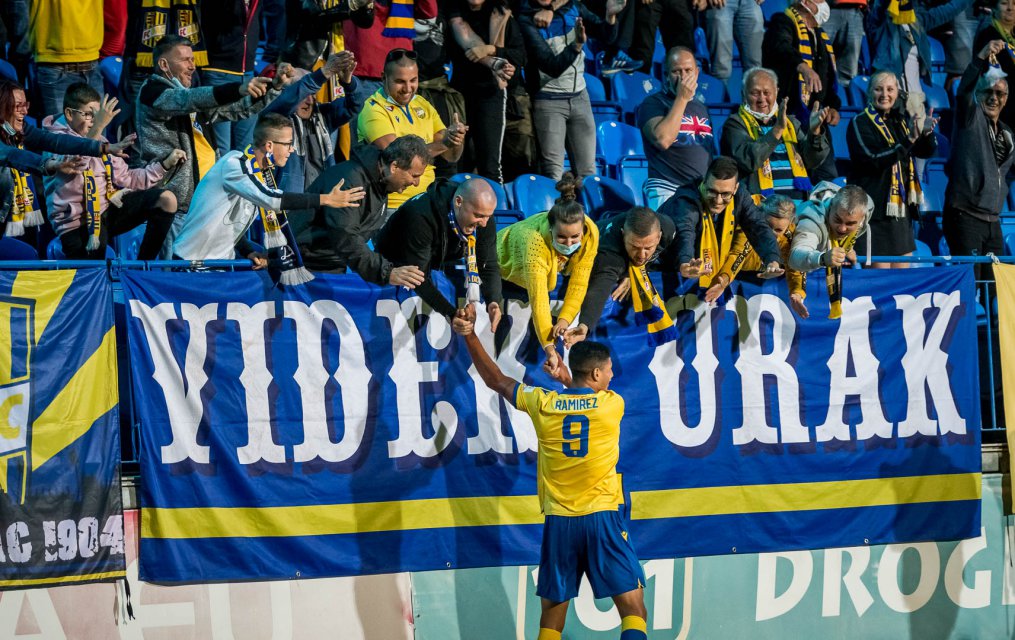Sami dobre viete, že aké veľké opatrenia sú teraz na tribúnach. Aj napriek tomu nám domáci ponúkli naozaj úctyhodný počas vstupeniek, a preto nás dnes parádne povzbudzuje približne 200 žlto-modrých.