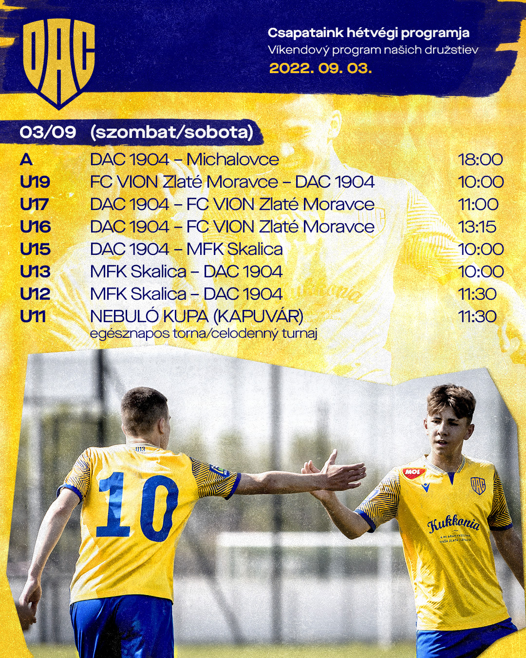 Pozrite si kompletný víkendový program našich tímov – srdečne vás pozývame na tribúny! pi 2.9.2022 KK