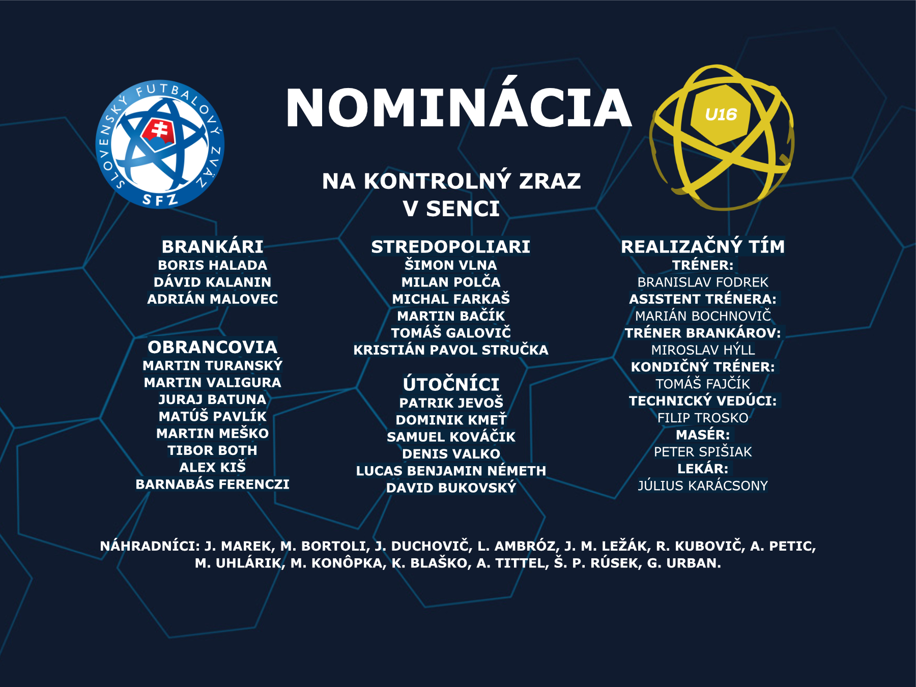Tréner reprezentačnej šestnástky Branislav Fodrek nominoval 23-členný káder na kontrolný zraz v Senci. Zraz nominovaných hráčov je v pondelok 6. marca.