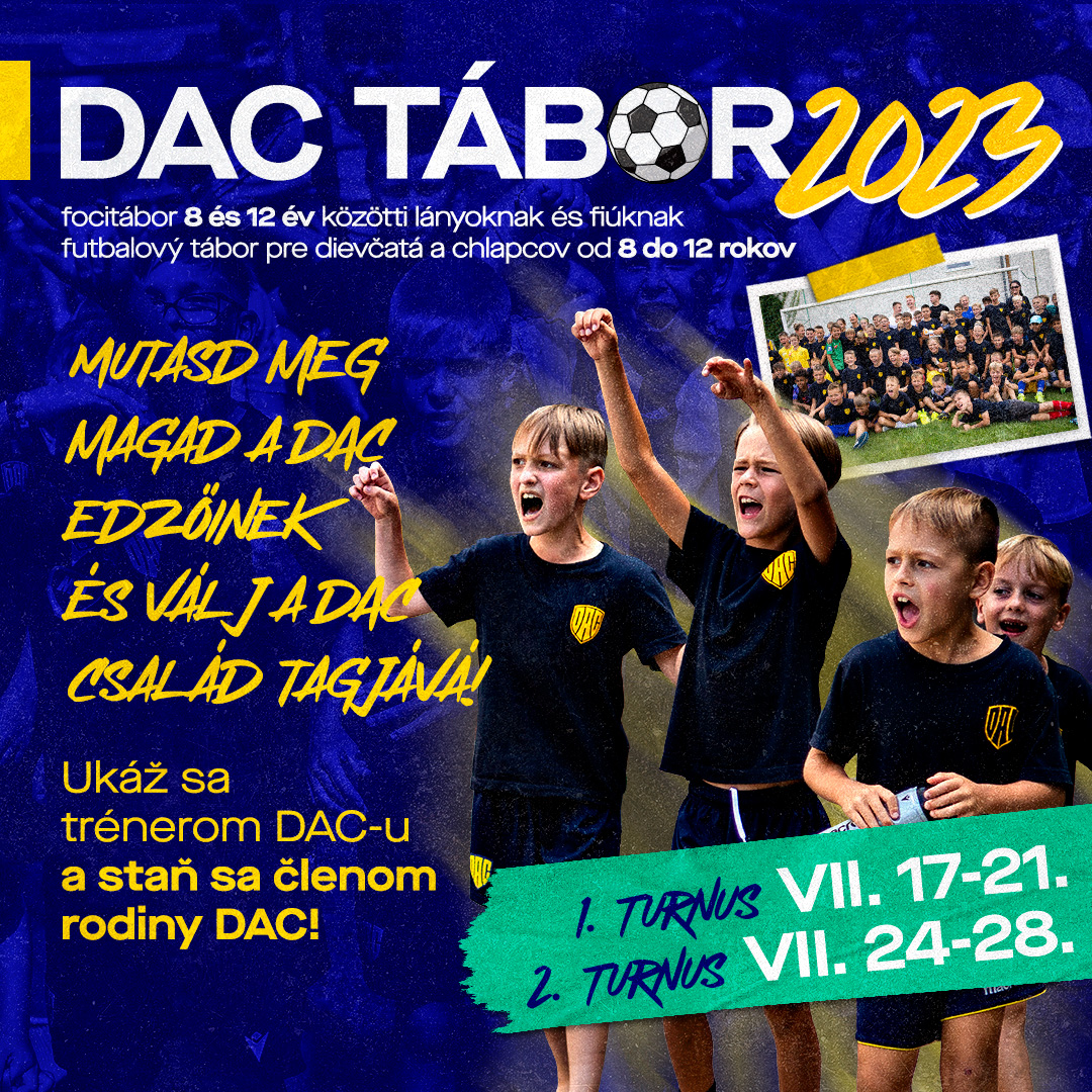 V tomto čase sa môže zdať, že letné prázdniny sú ešte ďaleko, ale už teraz sa oplatí si poznačiť medzi plánované letné programy, že ani tento rok medzi nimi nebude chýbať futbalový tábor DAC!