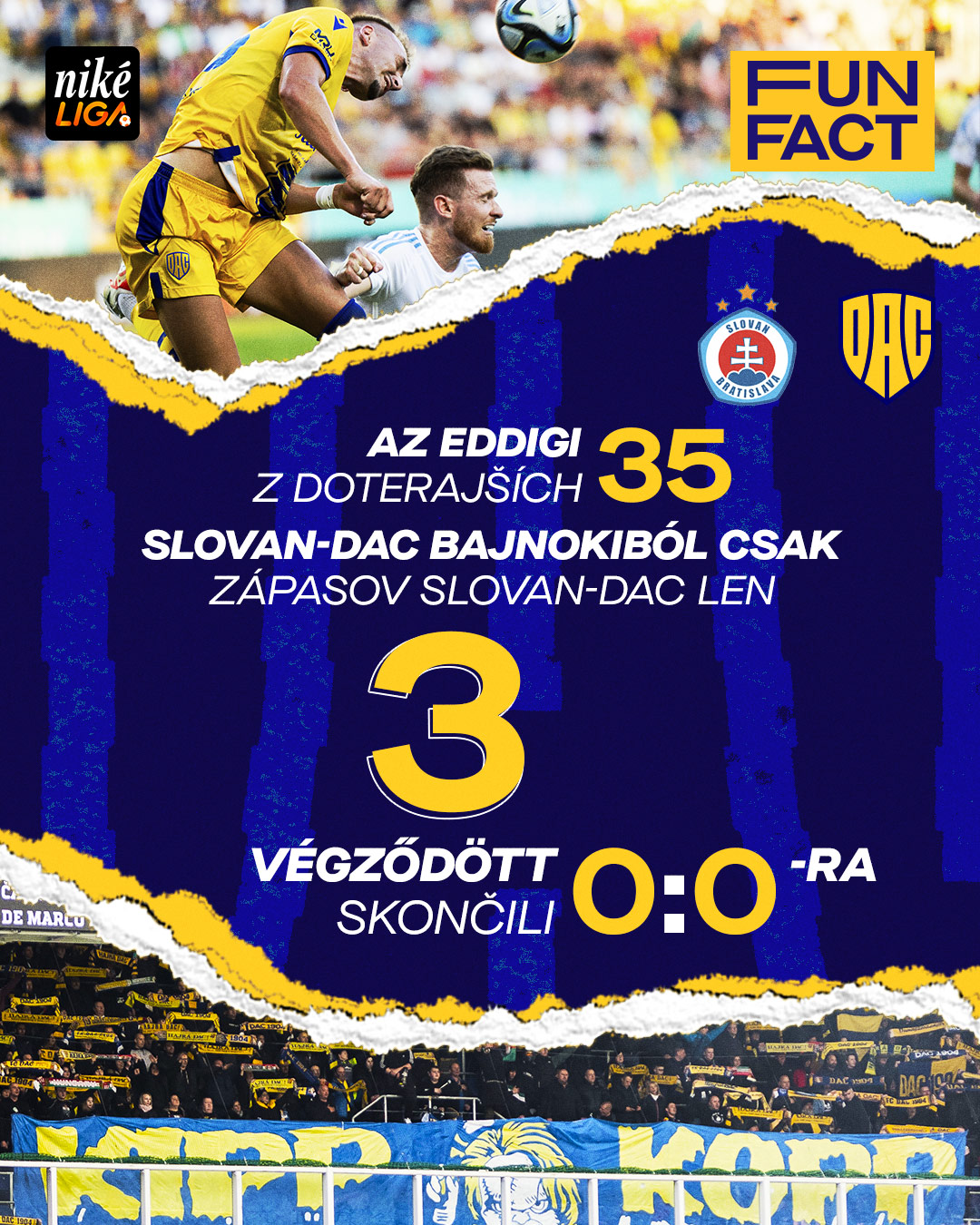 A bajnoki címvédő és az őszi első otthonában zárják a szezon őszi felét a sárga-kékek. A Slovan-DAC összecsapás vasárnap 17:30 órakor kezdődik.